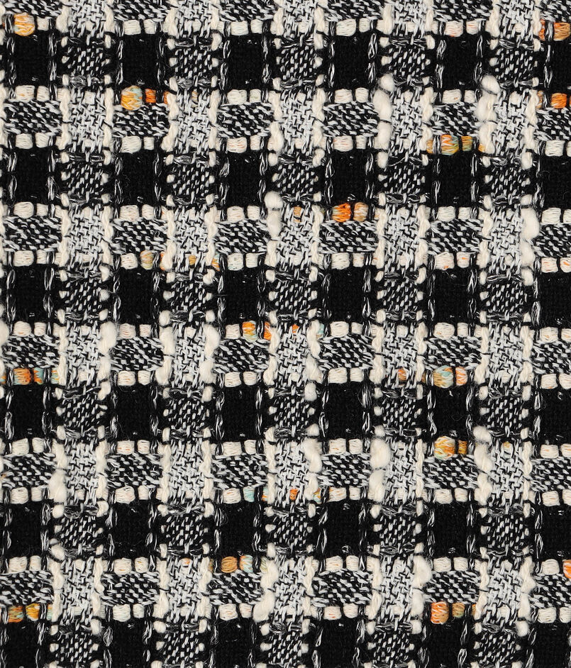 カラフルなカラーネップでモノトーンのギンガムチェックに奥行きと表情感をプラスしたイタリアのファブリックを使用しています。