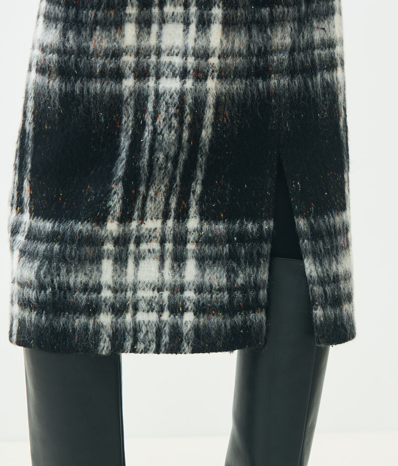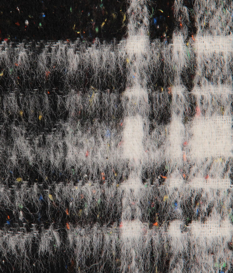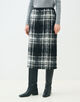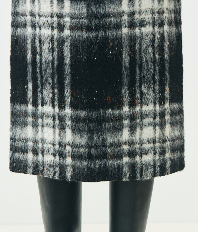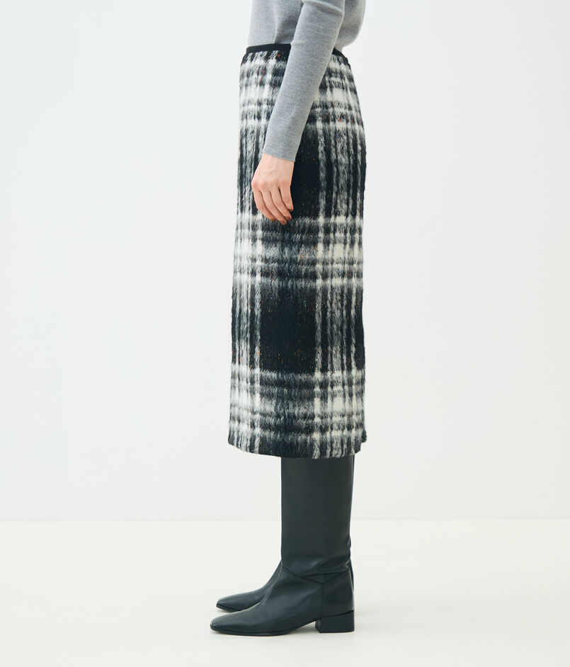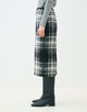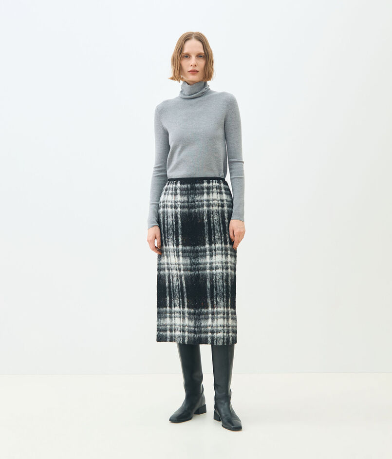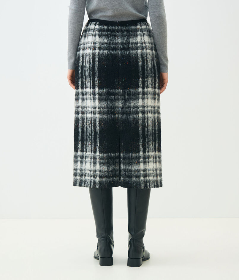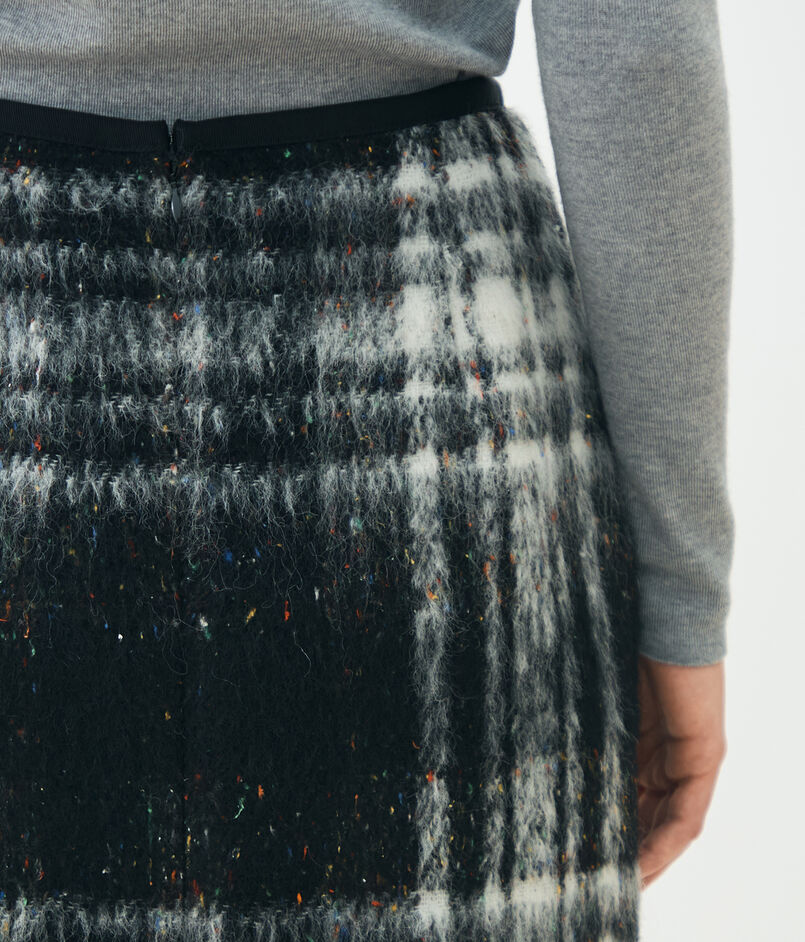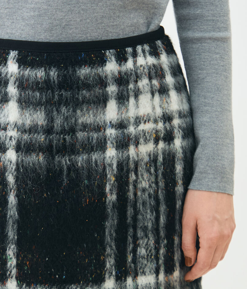 大胆なチェック柄とカラーネップ、凹凸のある表面感が魅力的なスカート。