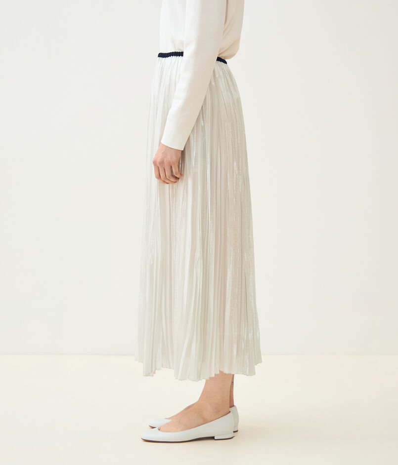 シルク混のシルバーヤーンを織り込んだオーガンジー素材のスカート。