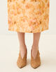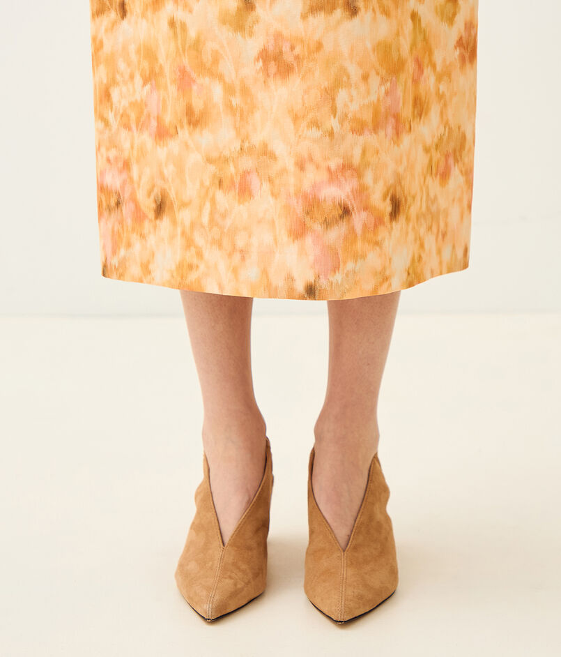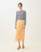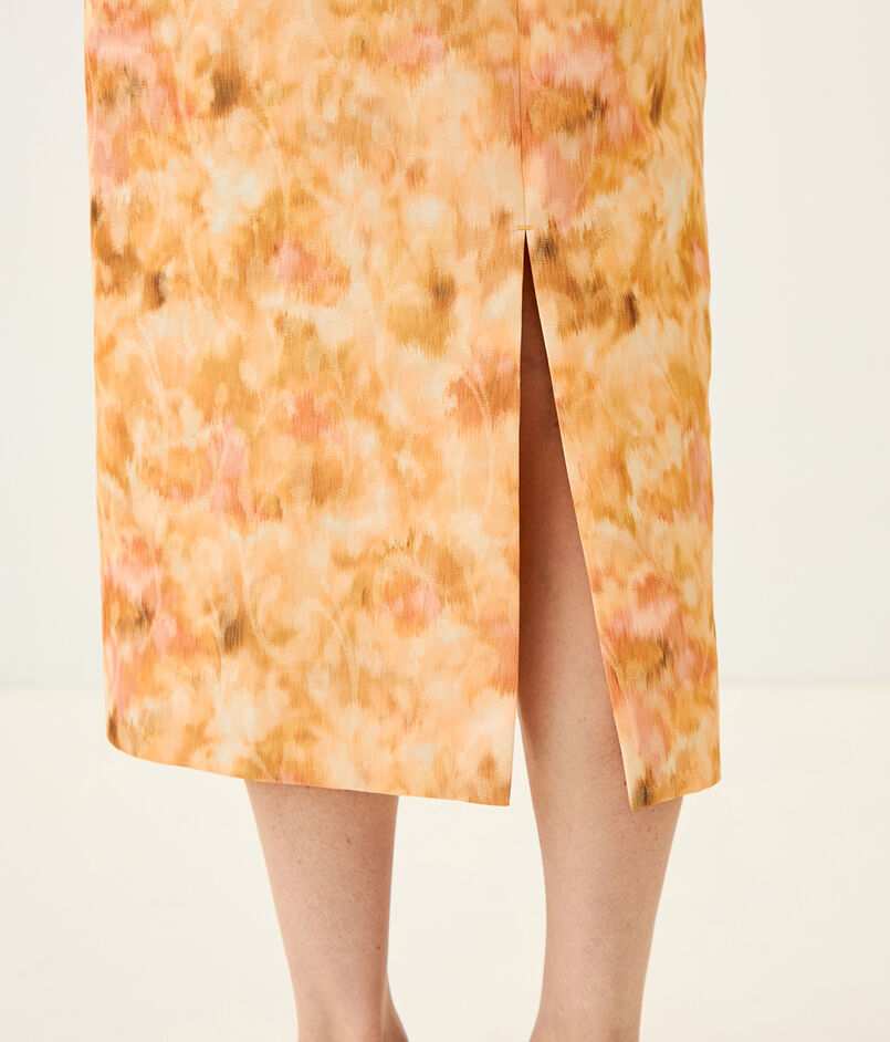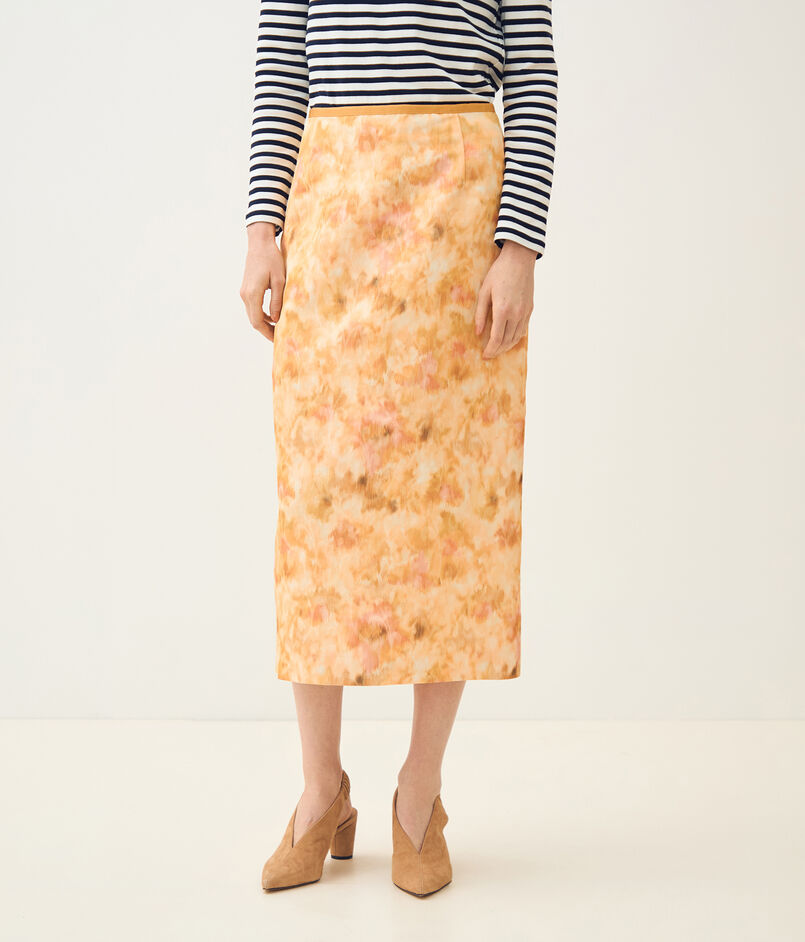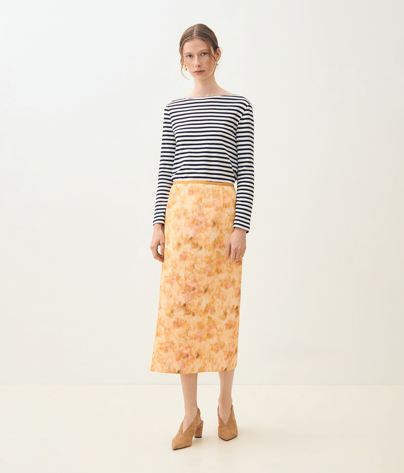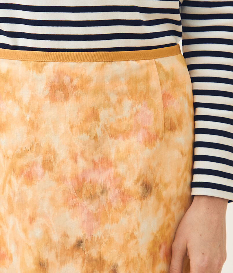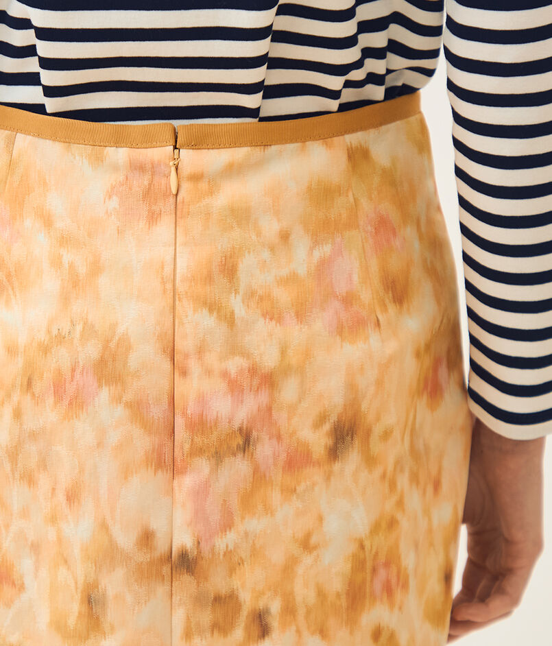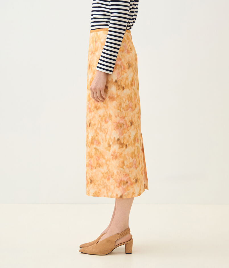 ジャカードとプリントの両方の技術を用いた、春を感じさせる美しい色合いの上質な素材を使用したスカート。