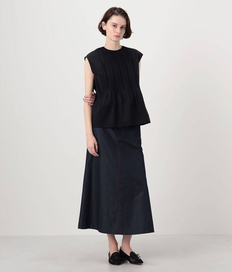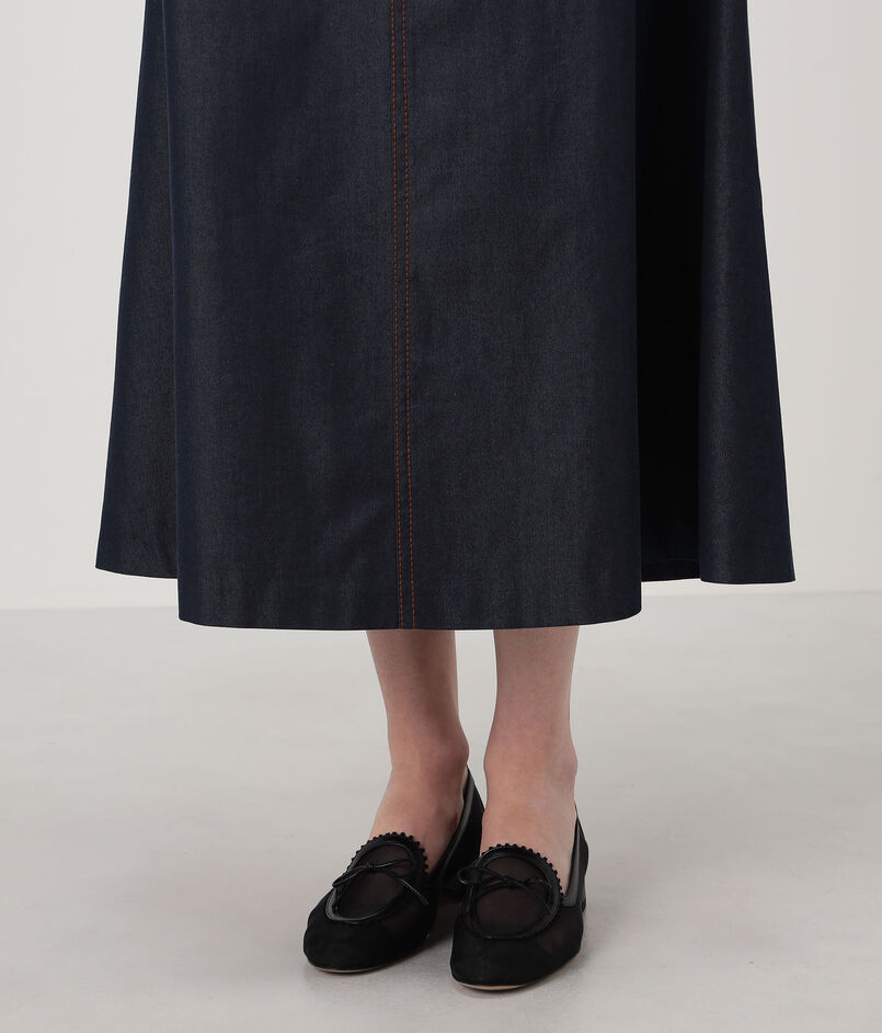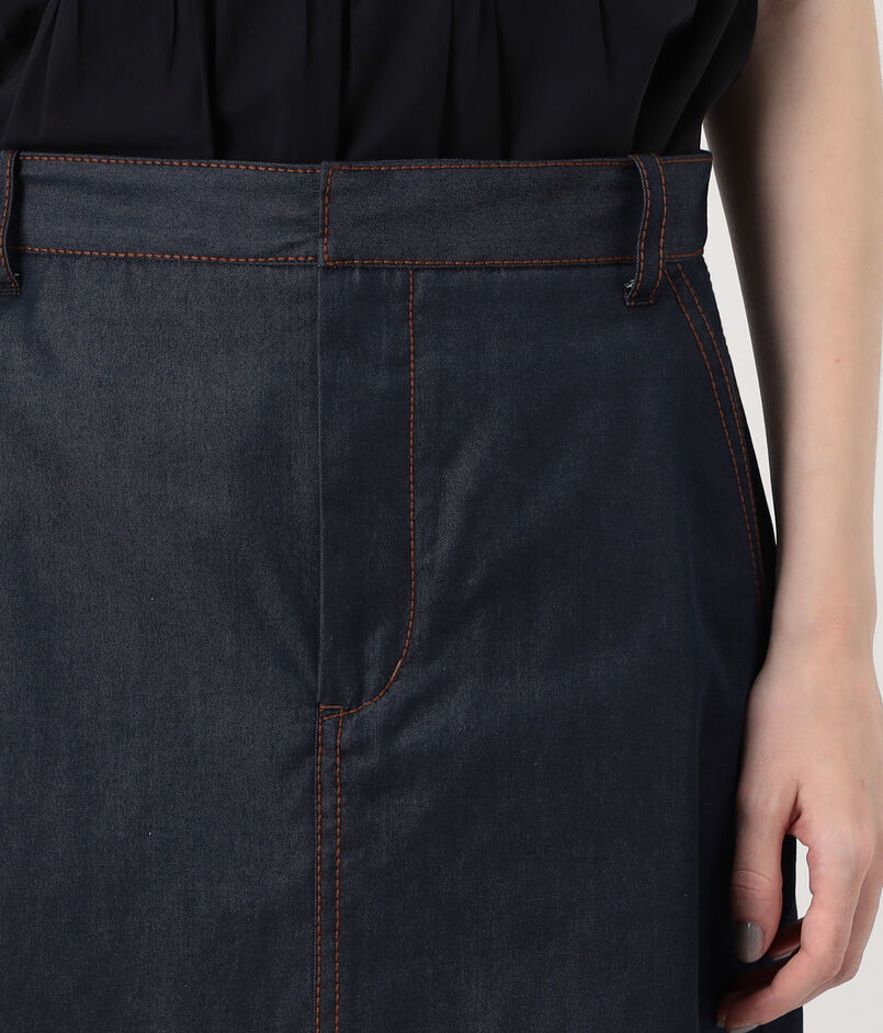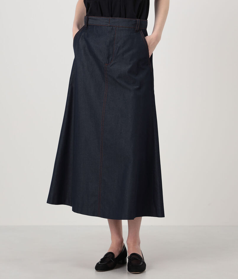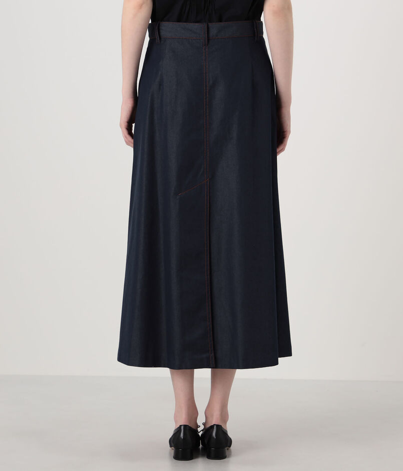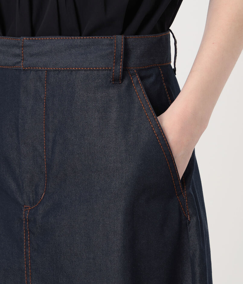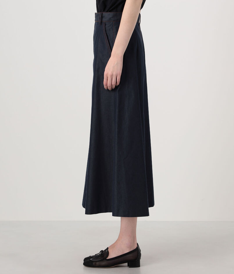 コットンシルクデニム トラペーズスカート