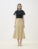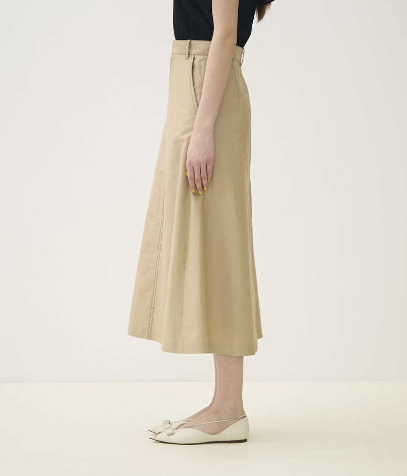 裾にかけてボリュームが出るデザインで、コンパクトなトップスやブラウスをタックインする着こなしがおすすめです。