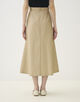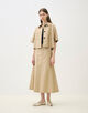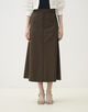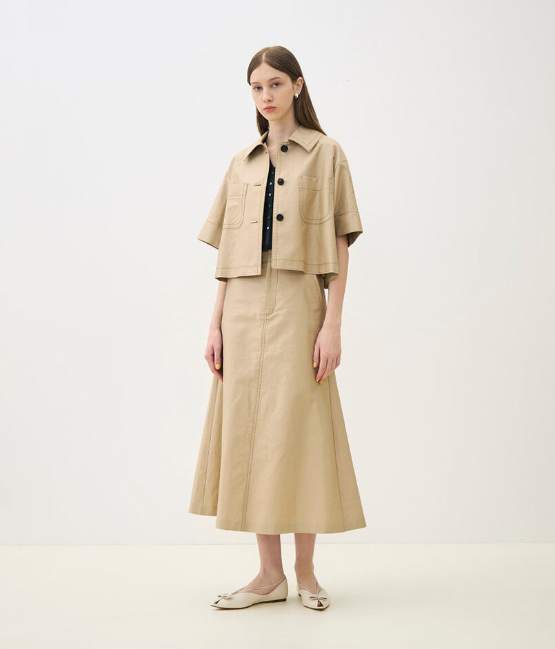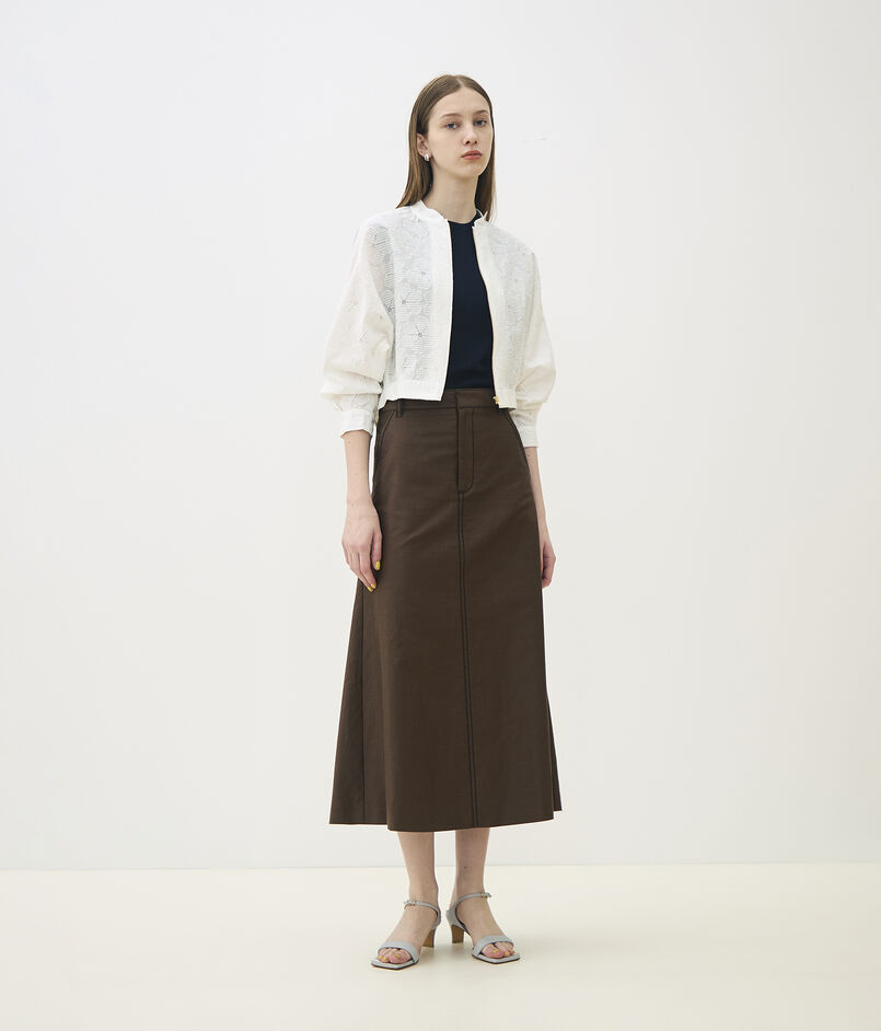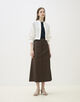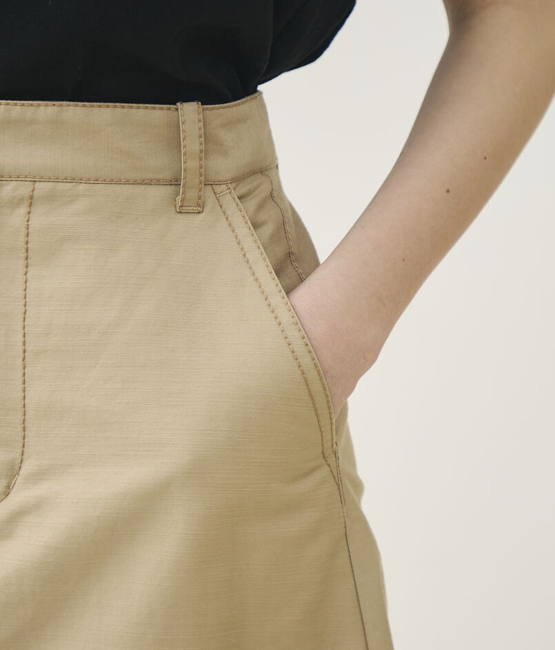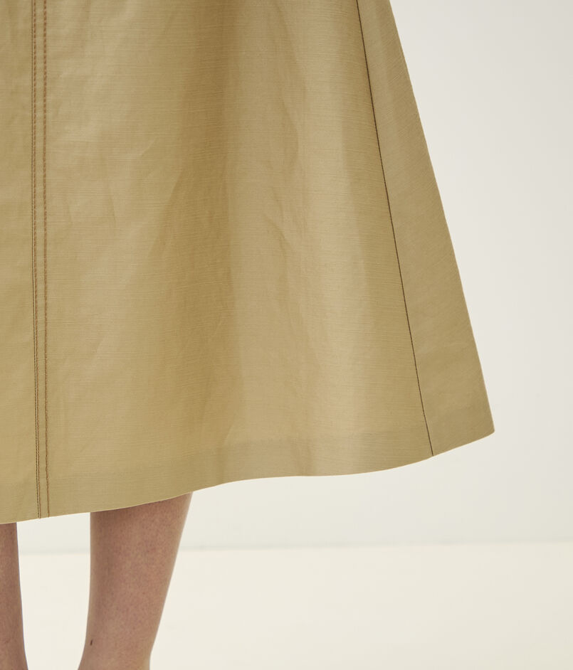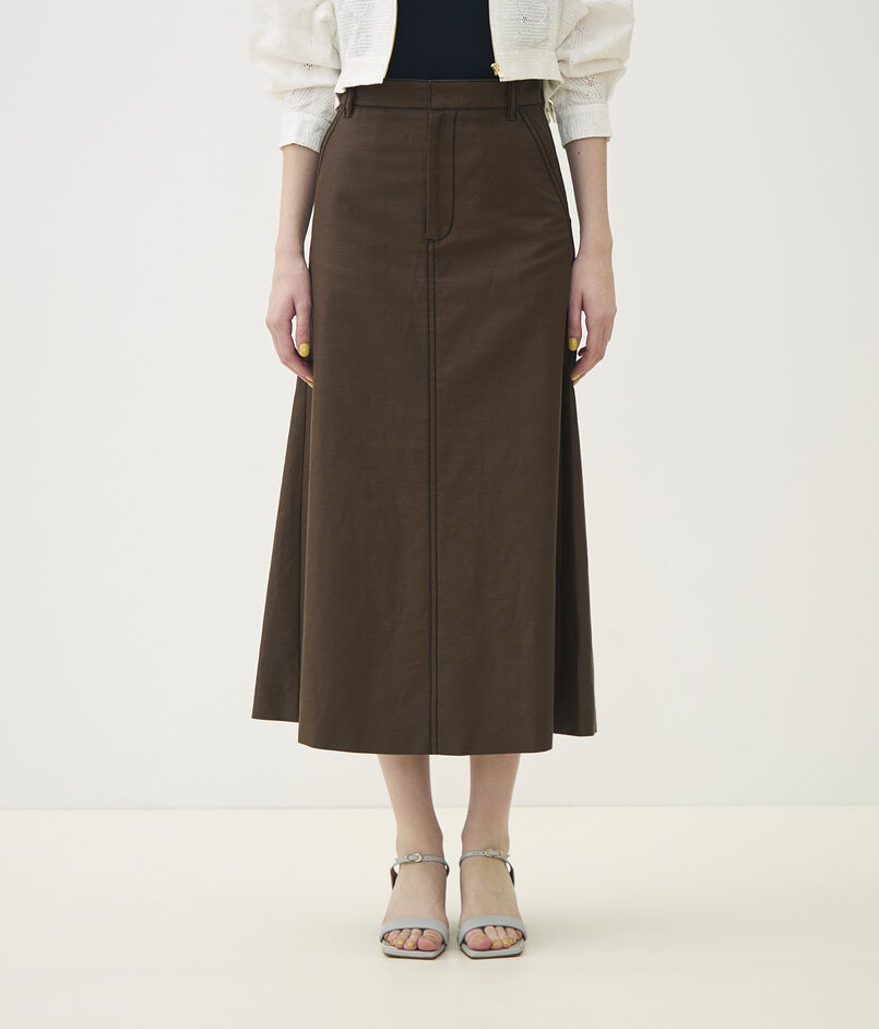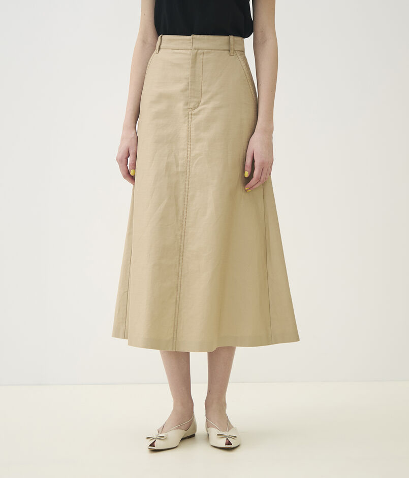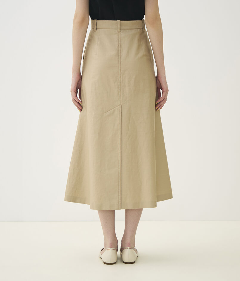 独特なハリと光沢感が特徴の、コットンラミーのモールスキン素材を使用したスカート。
