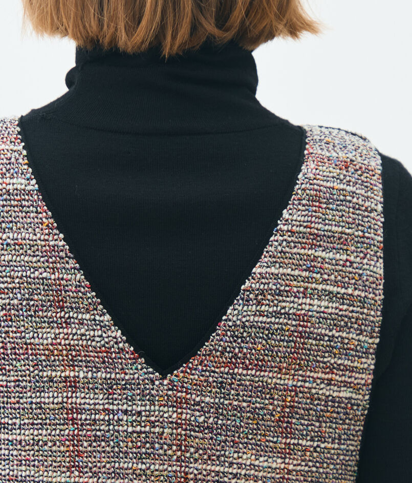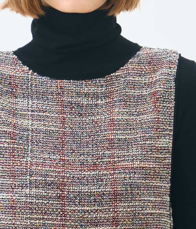 布帛のファンシーツイードをジャージー素材で表現したファンシーニットシリーズ。