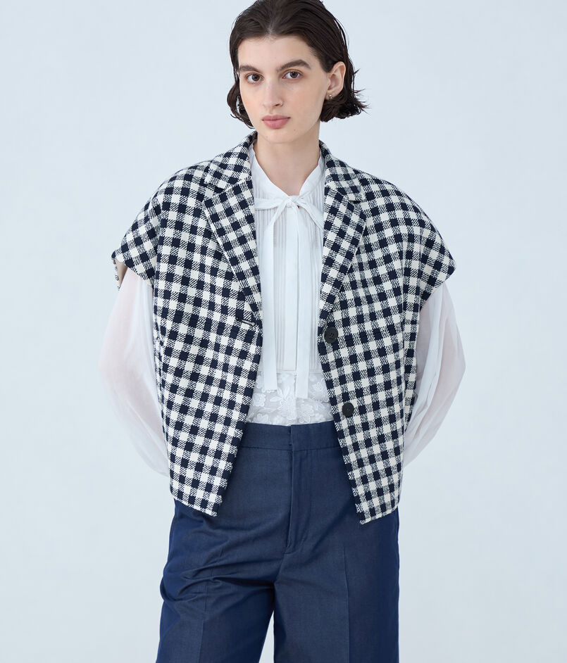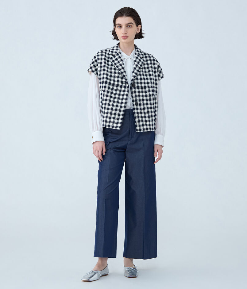 天然素材をしっかりとした手持ち感に織り上げたイタリアメーカーの素材を使用したジレ。