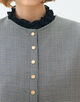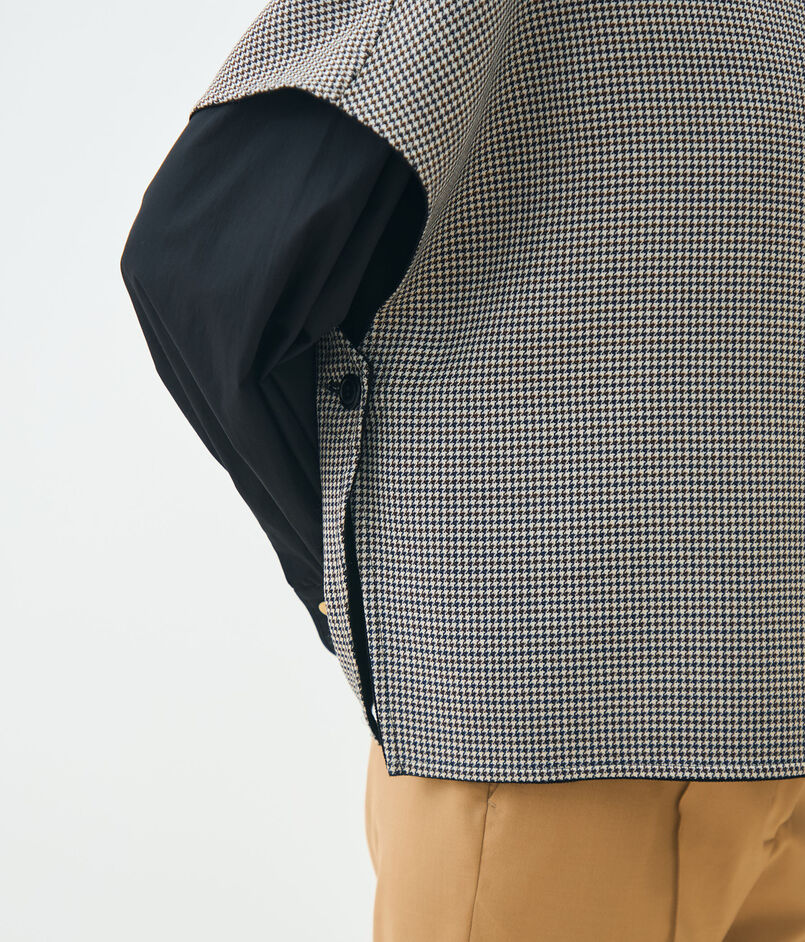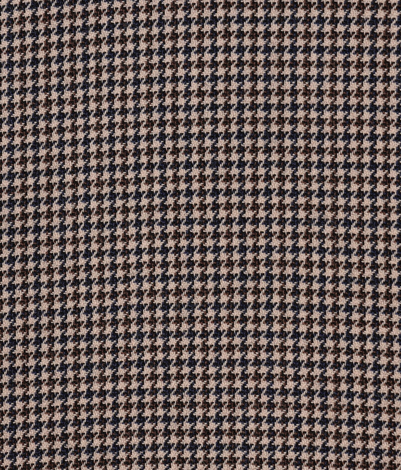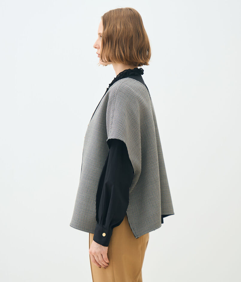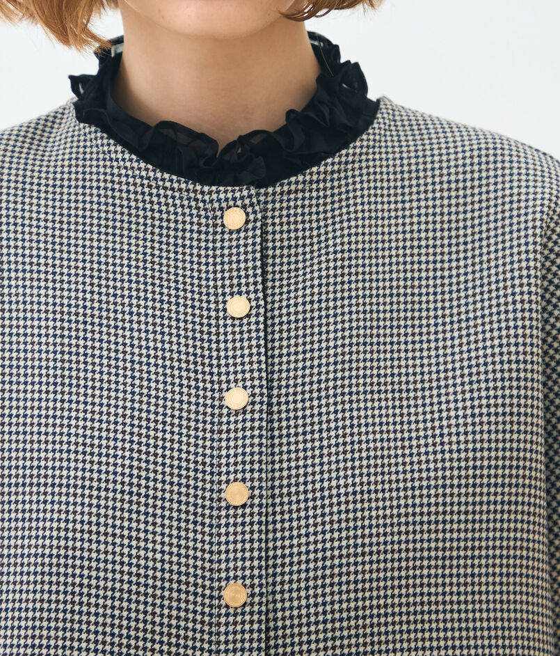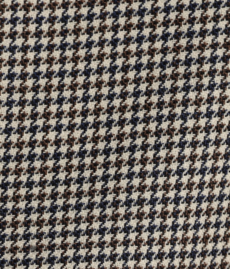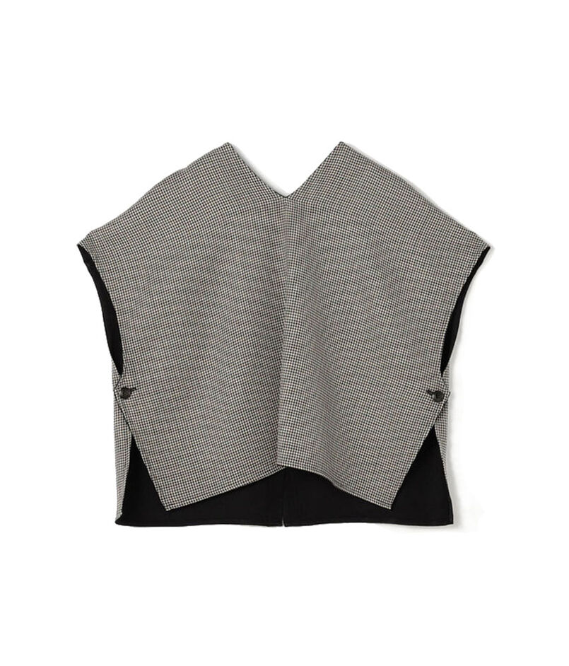 クラシカルなガンクラブチェック柄をベージュ系のカラーをベースにダークブラウン×ネイビーのカラー使いで表現した〈TOMORROWLAND collection〉のオリジナル素材を使用したマント。