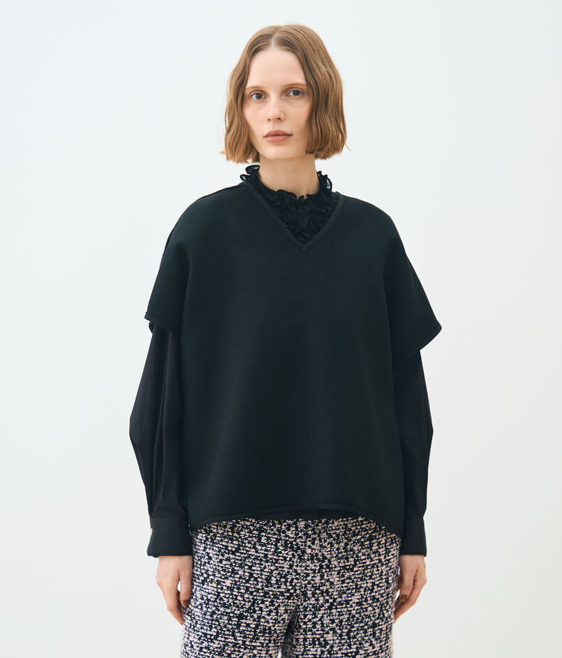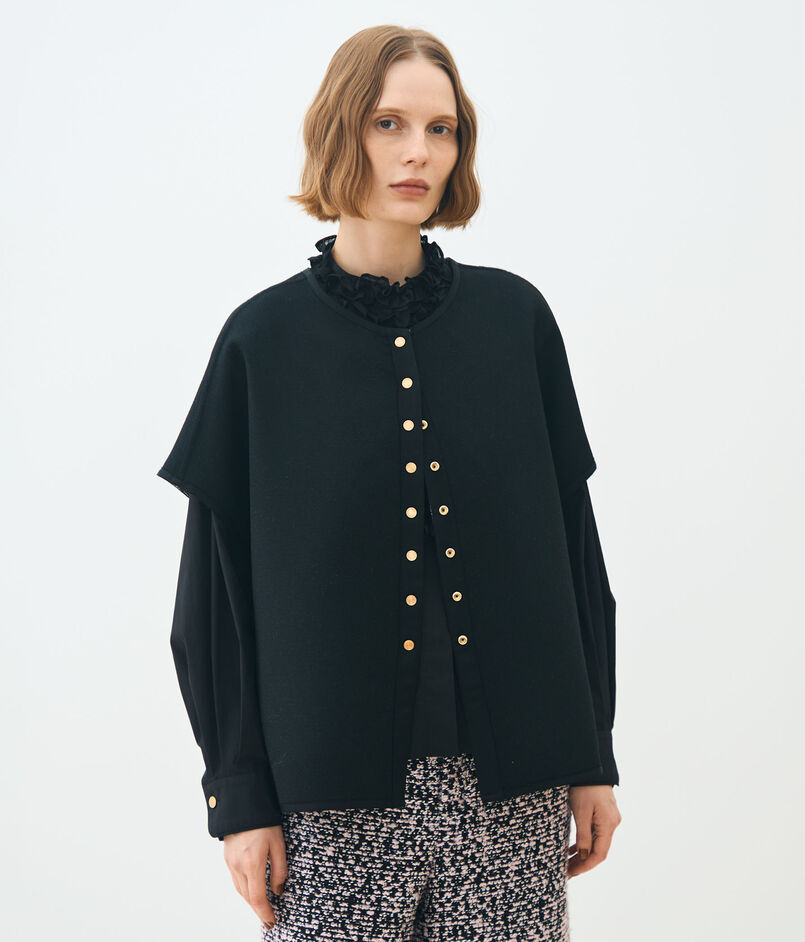 身体を包みこむたっぷりとした分量感で、さらりと羽織るだけでさまになる上質なアイテムです。