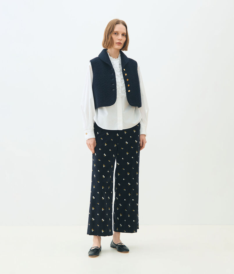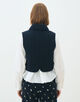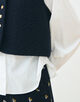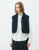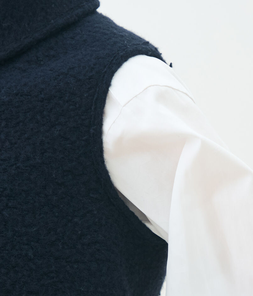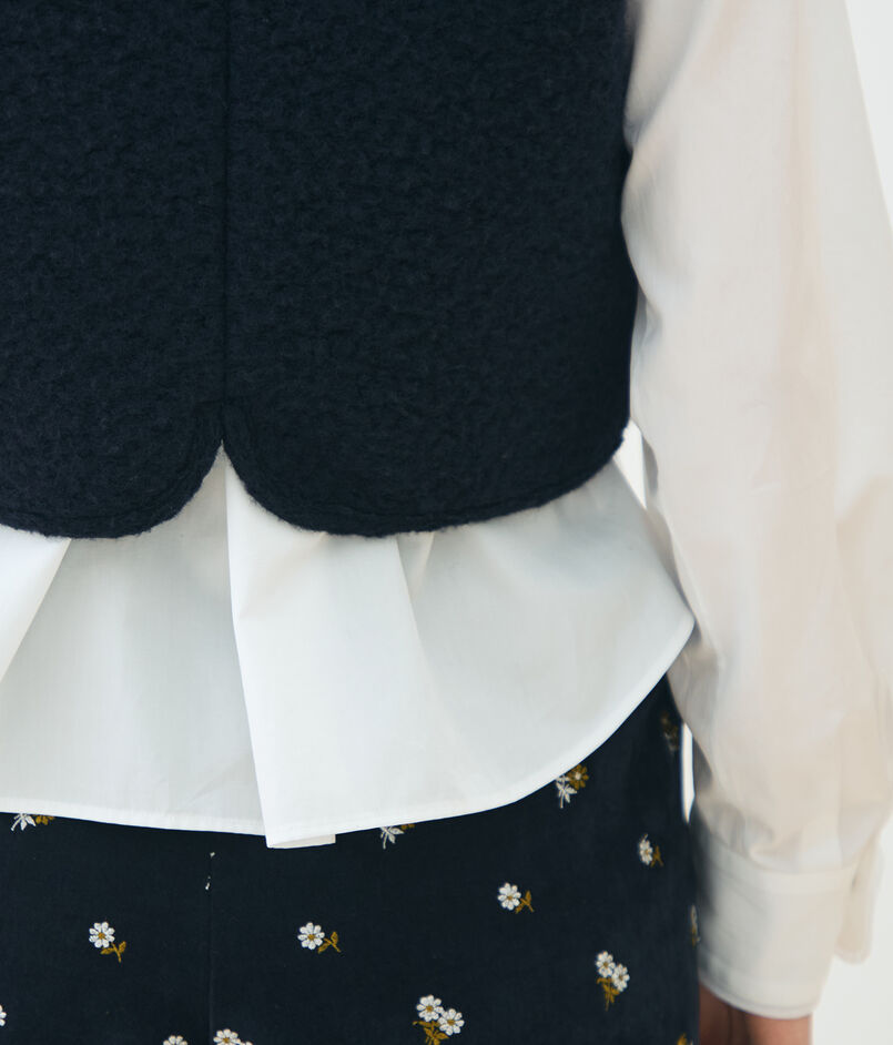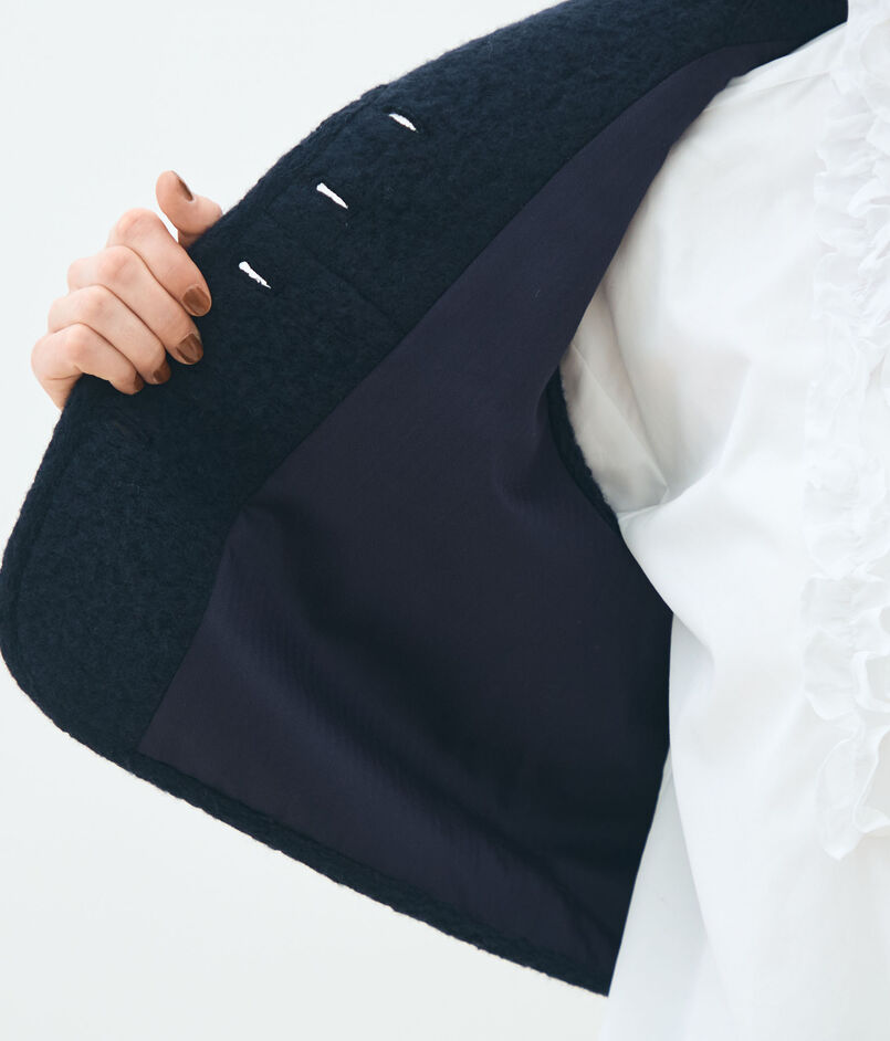 コンパクトなフォルムとショール風の襟でキュートな印象のジレ。