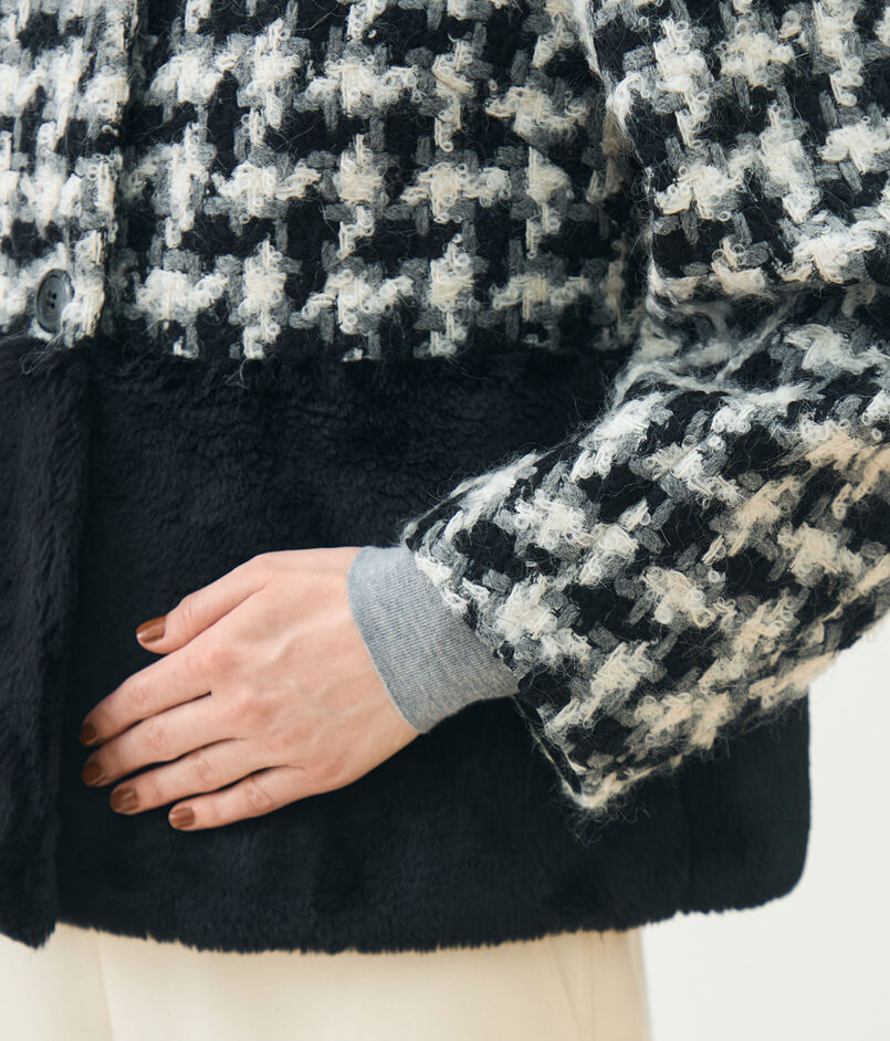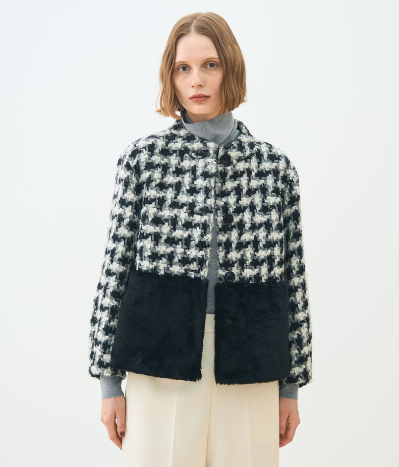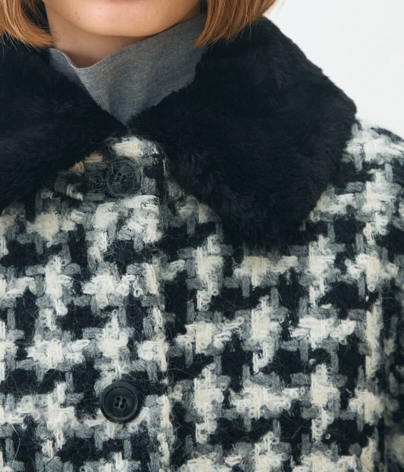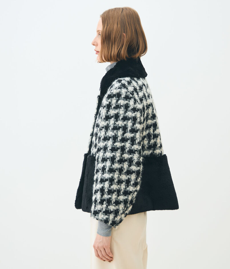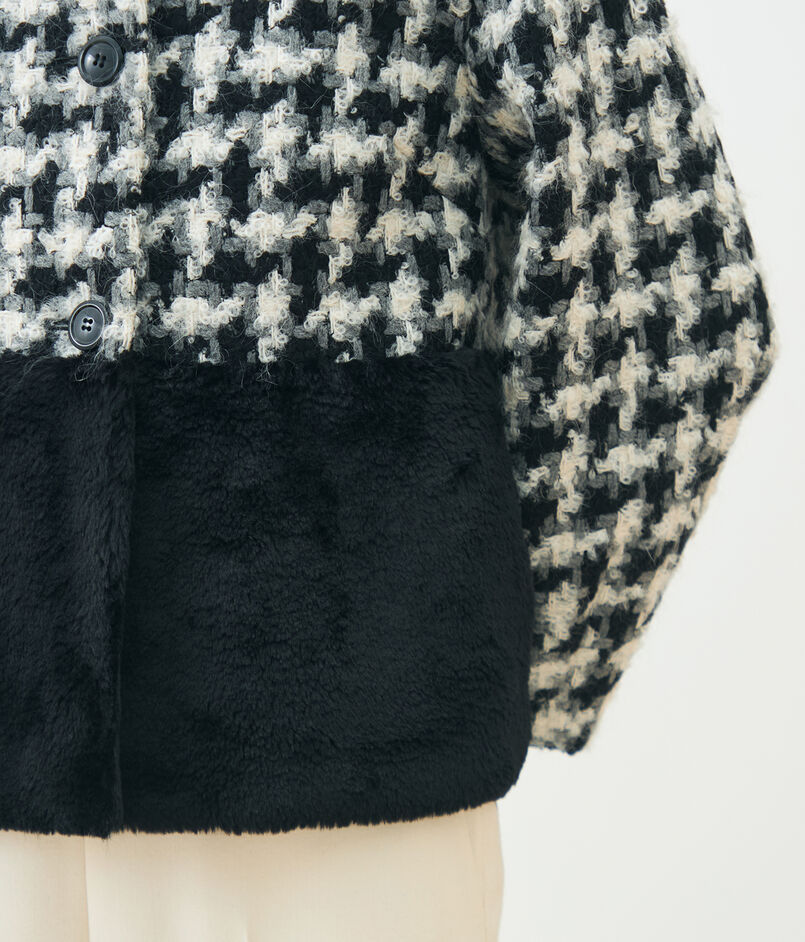 モノトーンの糸の組み合わせで表現したベーシックなハウンドトゥース柄で、インパクトのある素材に仕上がっています。