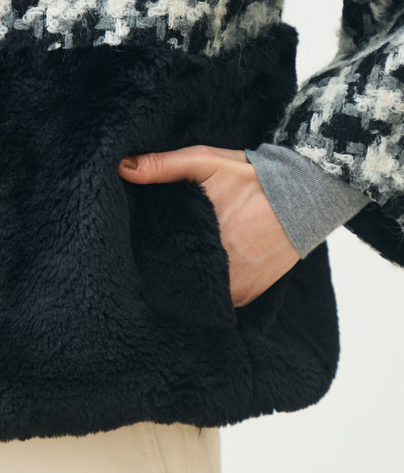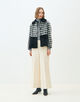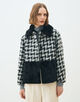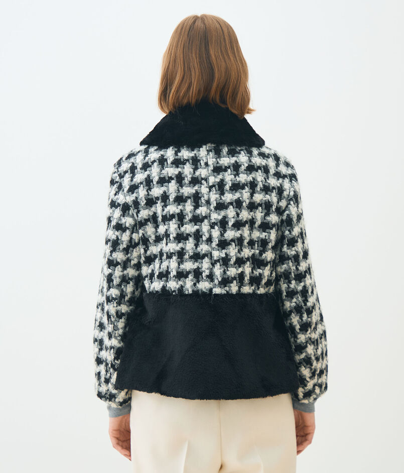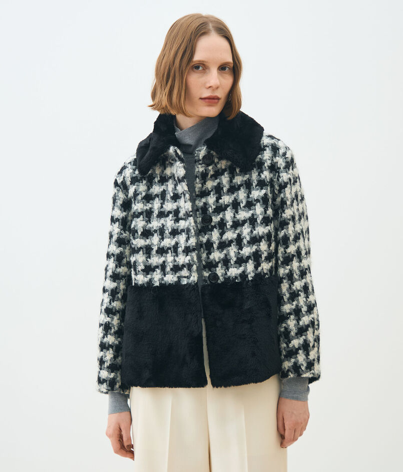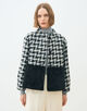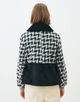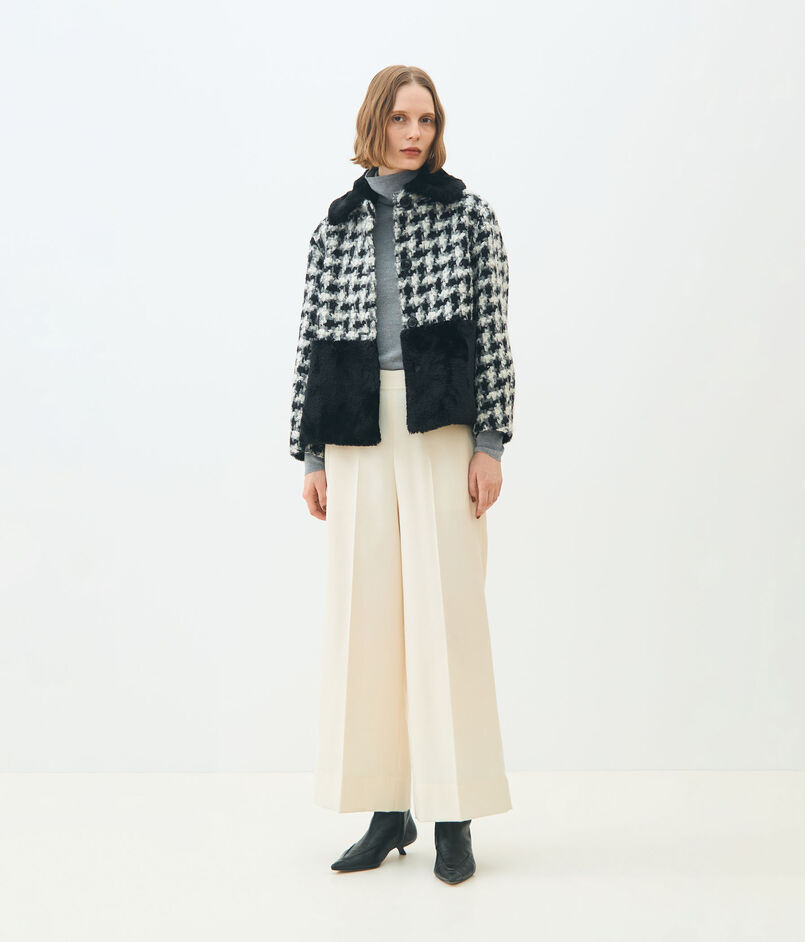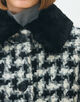モノトーンの糸の組み合わせで表現したベーシックなハウンドトゥース柄で、インパクトのある素材に仕上がっています。