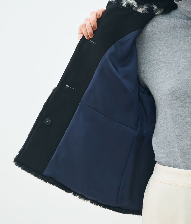 イタリアのファブリックメーカーのツイード素材を使用したアウター。