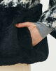 衿と裾にあしらったファーとの絶妙なコンビネーションが魅力的な一着。