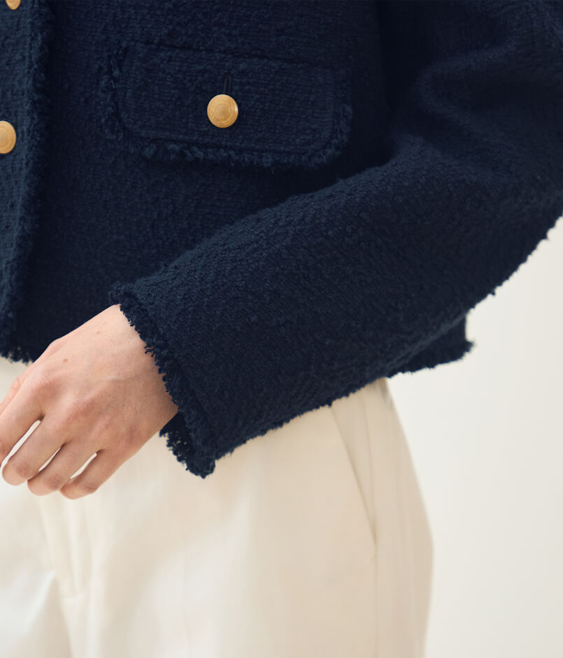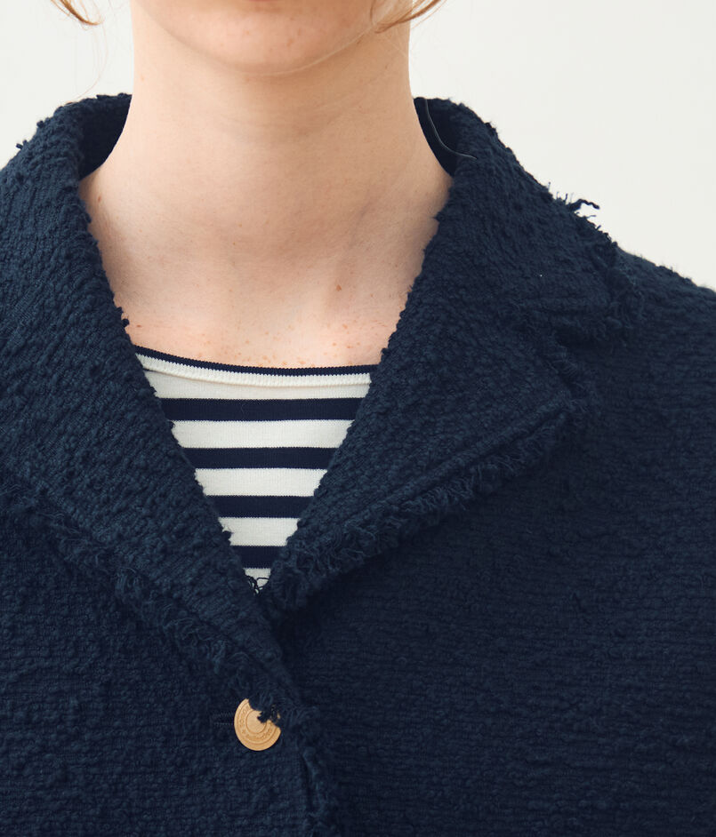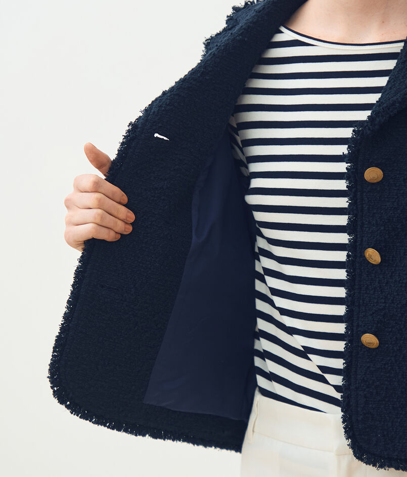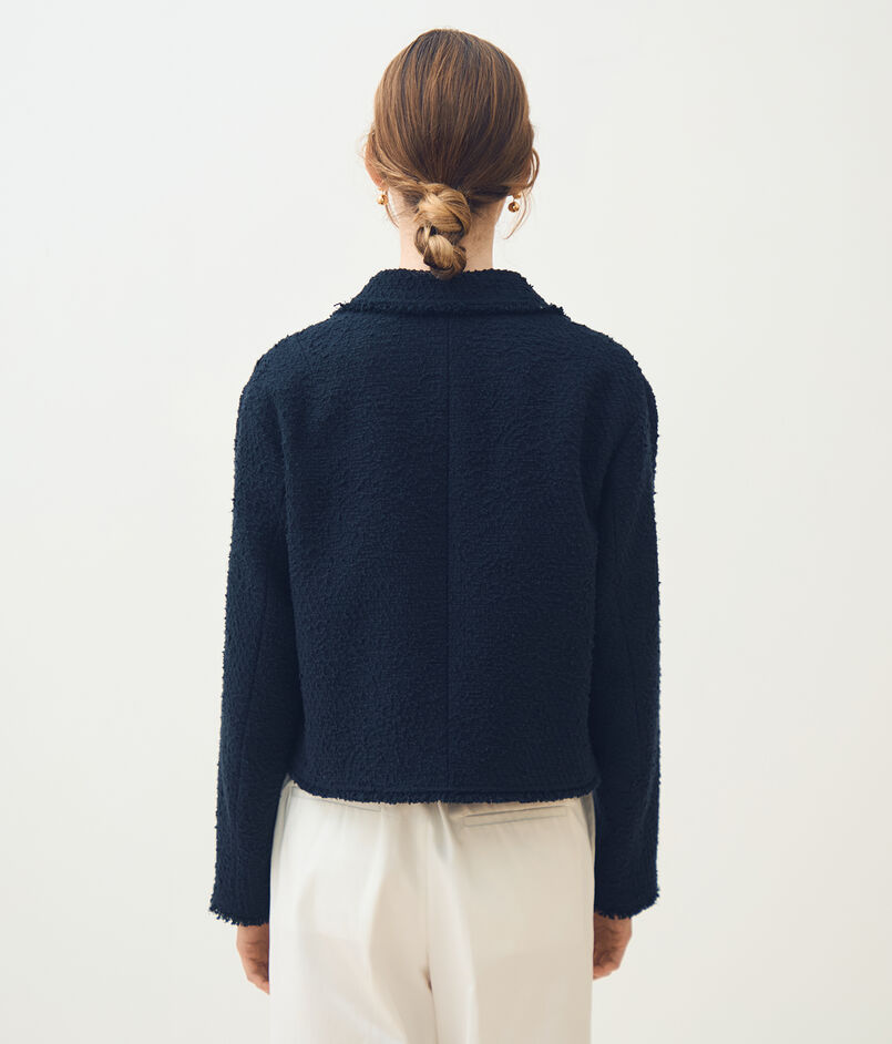 空気を含んだような凹凸のある表面感が特徴的なイタリアの素材を使用したジャケット。