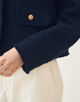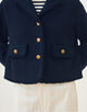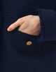 金属の持つ自然なゴールド色を活かしたブランドオリジナルのメタルボタンもこだわりのポイント。