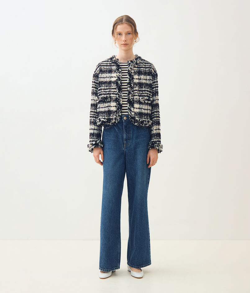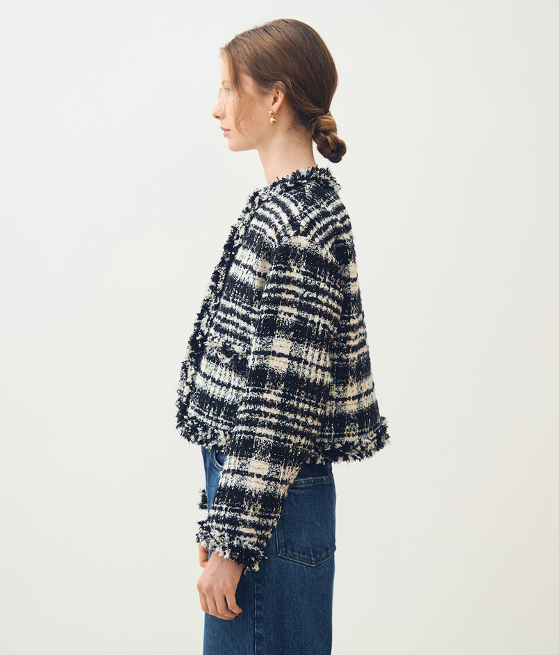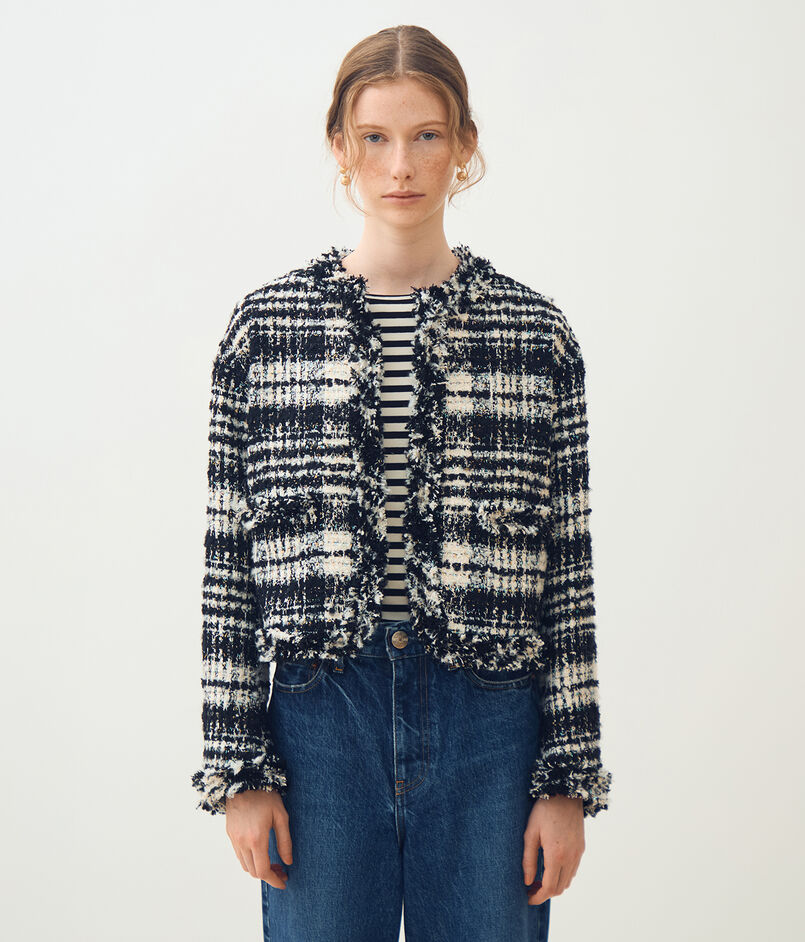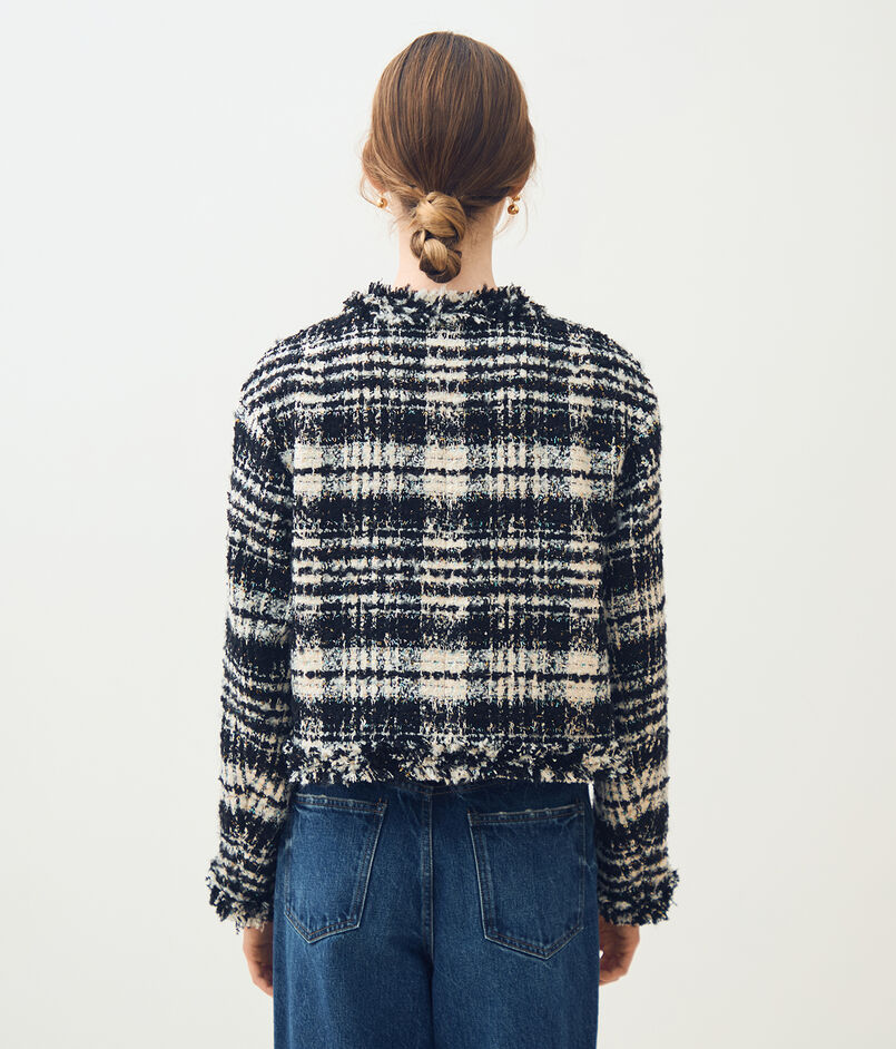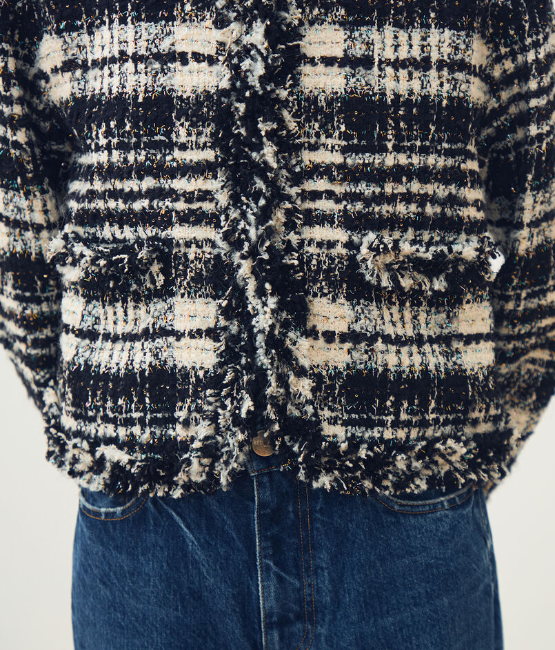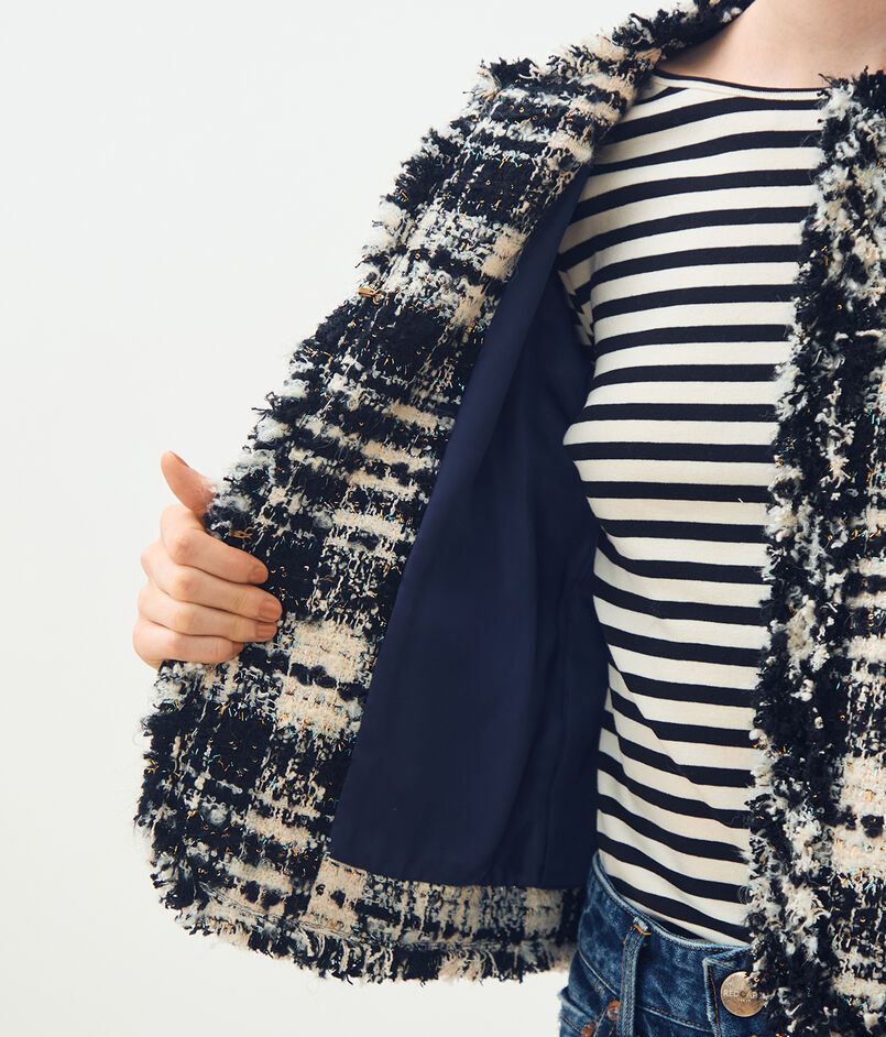 ファンシーツイードに定評のあるフランス・CLARENSON社の素材を使用したジャケット。