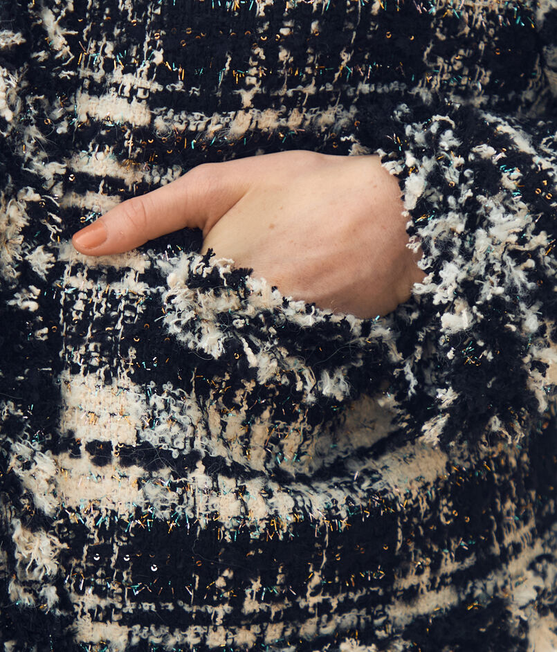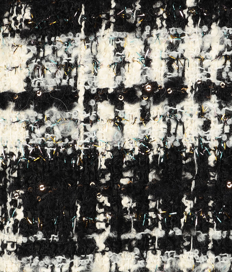 ベーシックなモノトーンチェックにオーロラ色の意匠糸を入れ込むことで、煌びやかで高級感のある表情に仕上がっています。