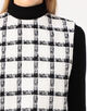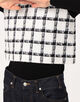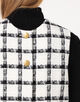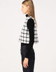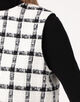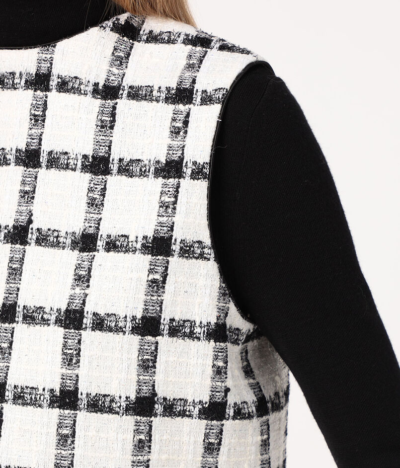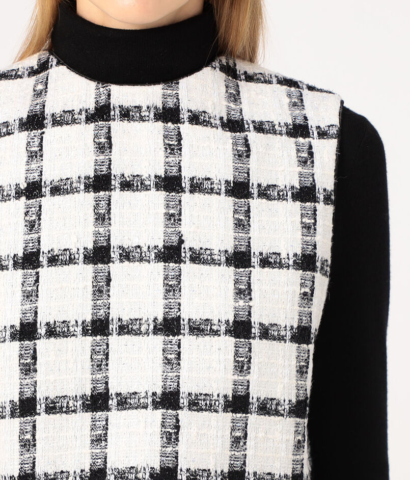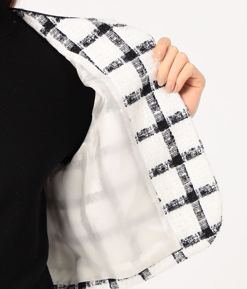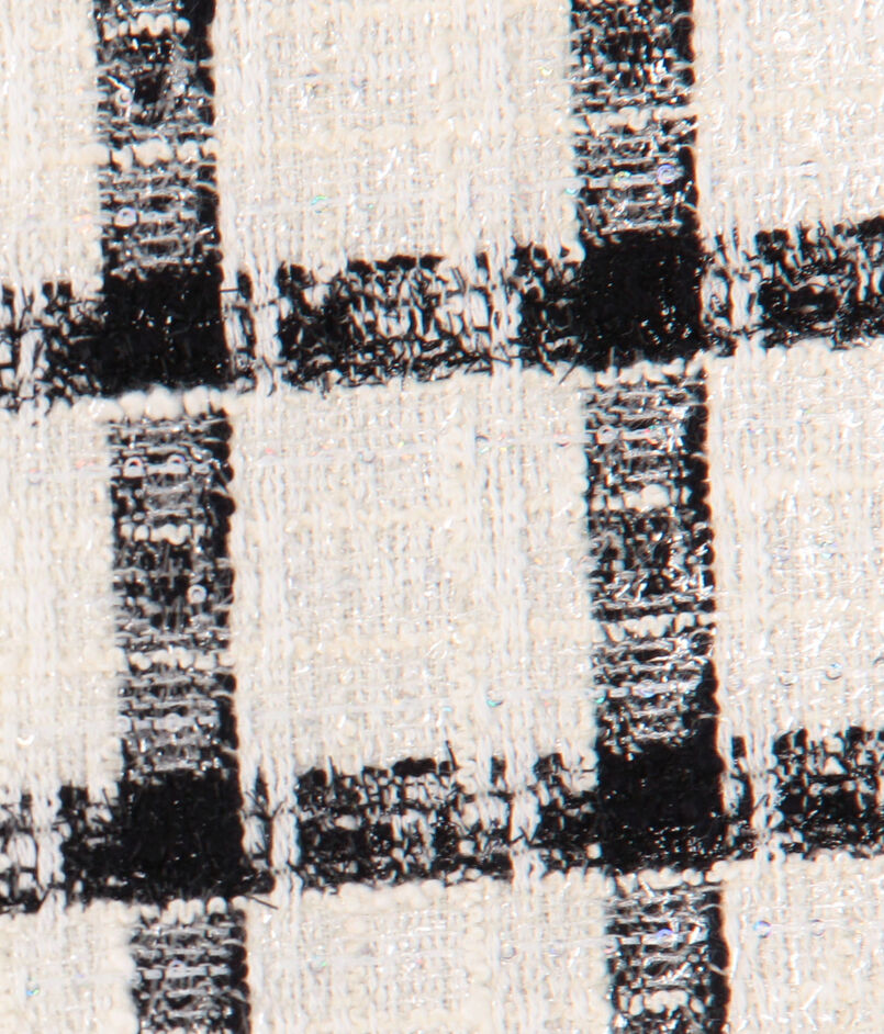 トラディショナルなタッターソールチェックに繊細なフィルム糸と小さなスパンコールを入れることで、絶妙なきらめきが上品な印象を添えています。