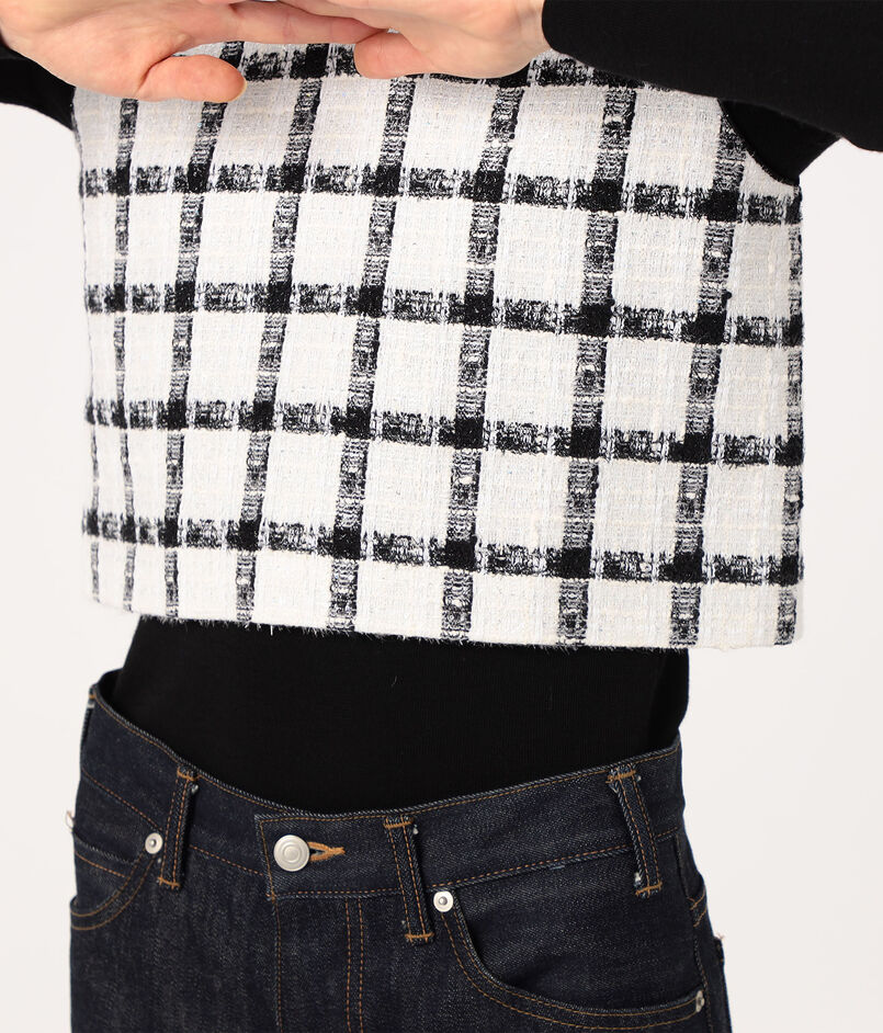 きゅっと詰まったネックラインとショート丈のバランスですっきりと着こなせるバランスに仕上げました。
