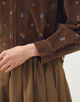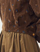 深みのあるブラウンカラーと繊細な刺繍が、落ち着きの中にほどよい可愛らしさを添えてくれます。