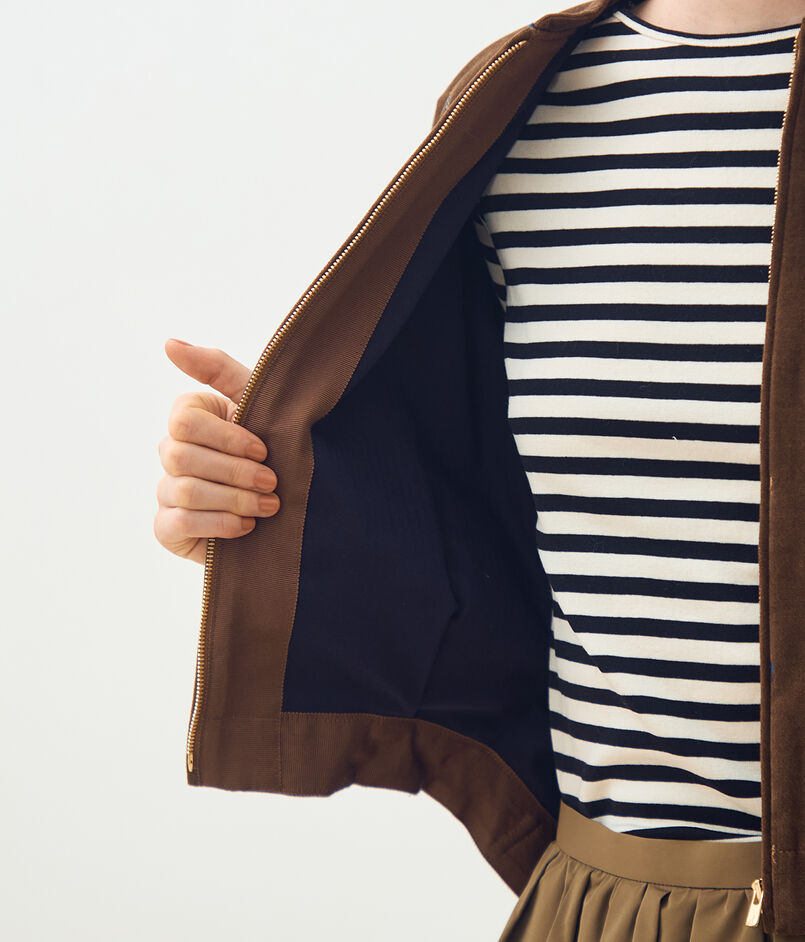袖口や裾に入れたタックが生み出す、ころんと丸みのあるシルエットが特徴のブルゾンは、羽織るだけでコーディネートに立体感が生まれ、女性らしいニュアンスを引き出します。