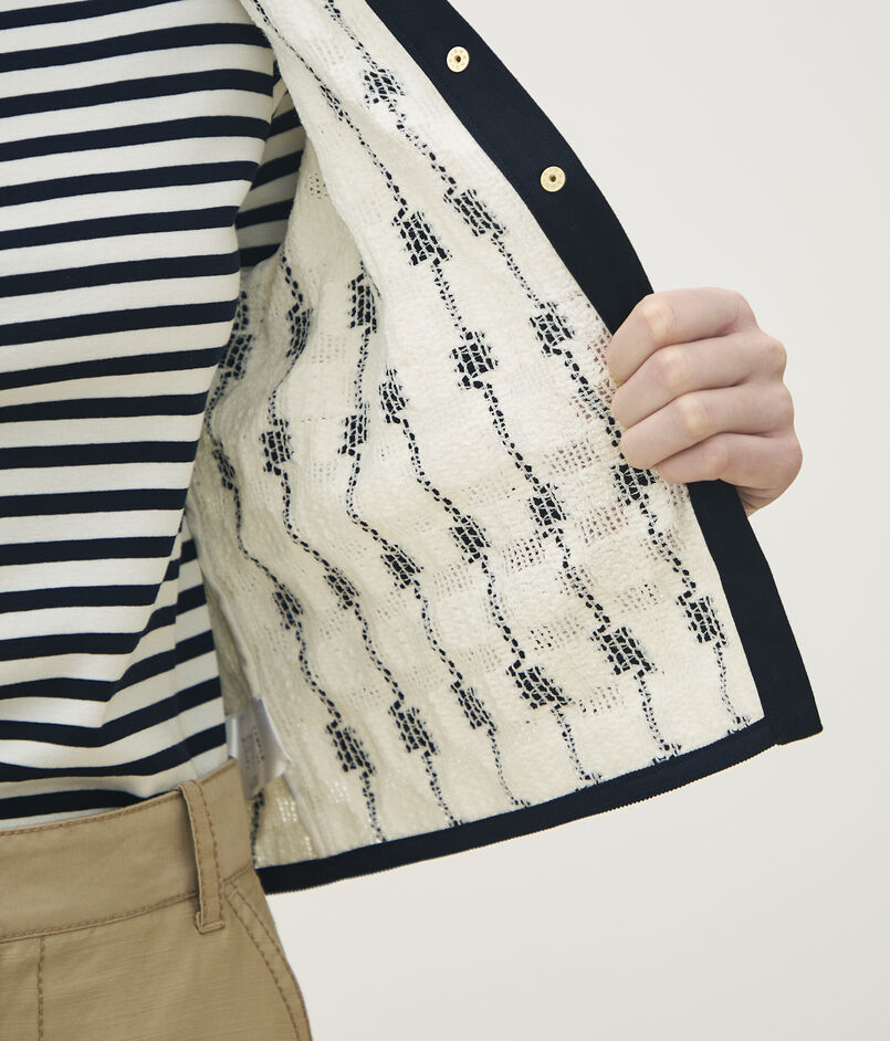 イタリアならではの技術で作られた、独特の凹凸と透け感に特徴のあるトリコット素材を使用したジャケット。