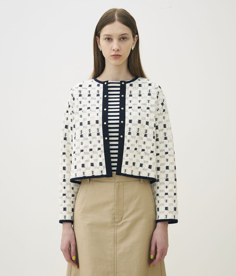 ブロックトリコット カーディガンジャケット