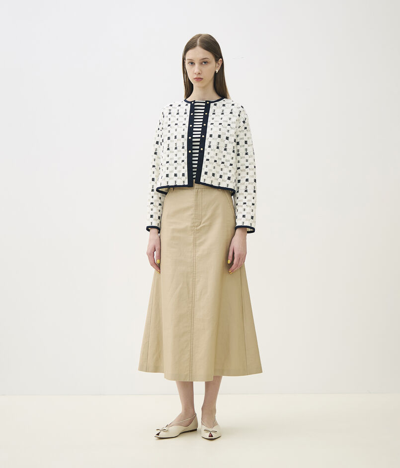 すっきりとしたショート丈でワンピースやボリュームのあるボトムスとも相性抜群の一着。