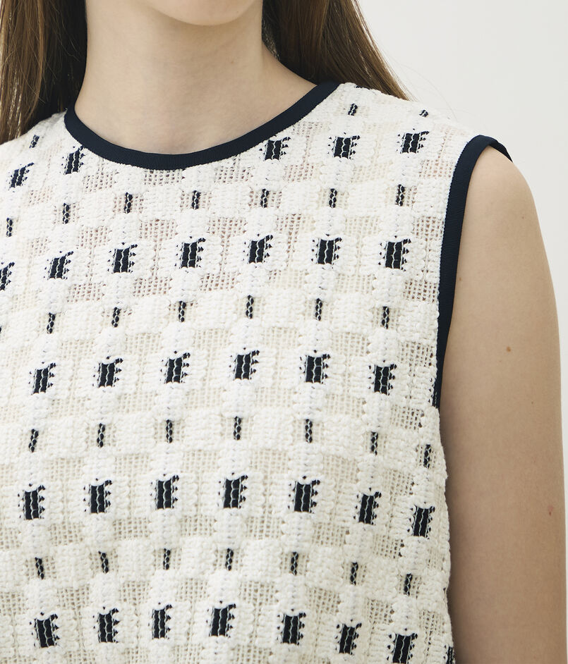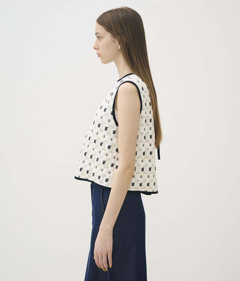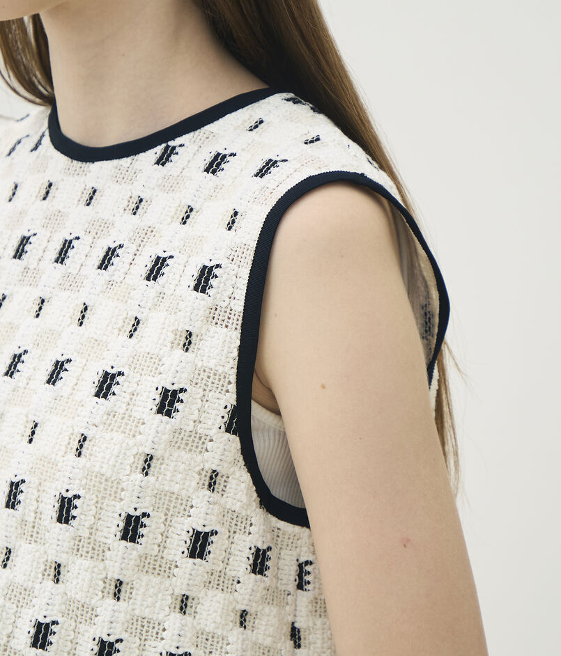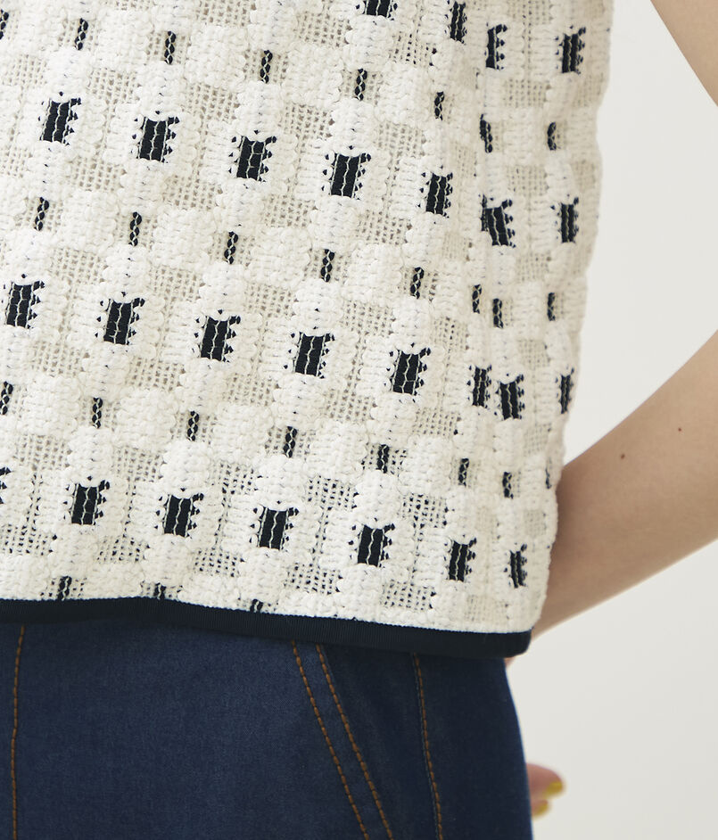 イタリアならではの技術で作られた、独特の凹凸と透け感に特徴のあるトリコット素材を使用したトップス。