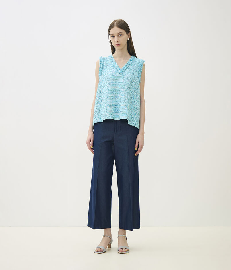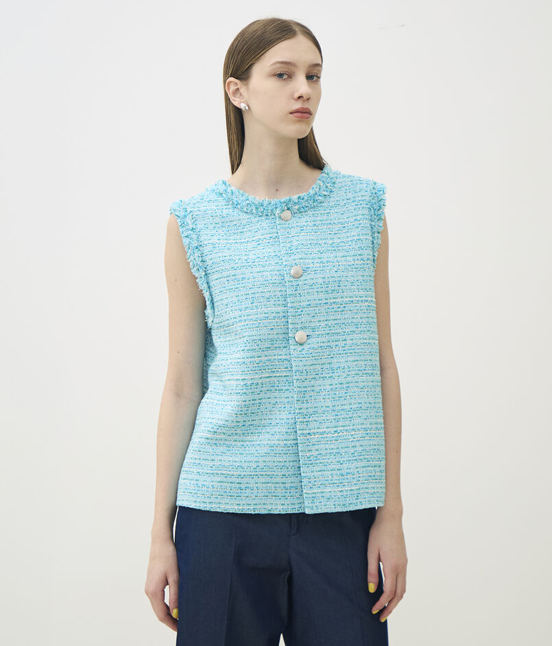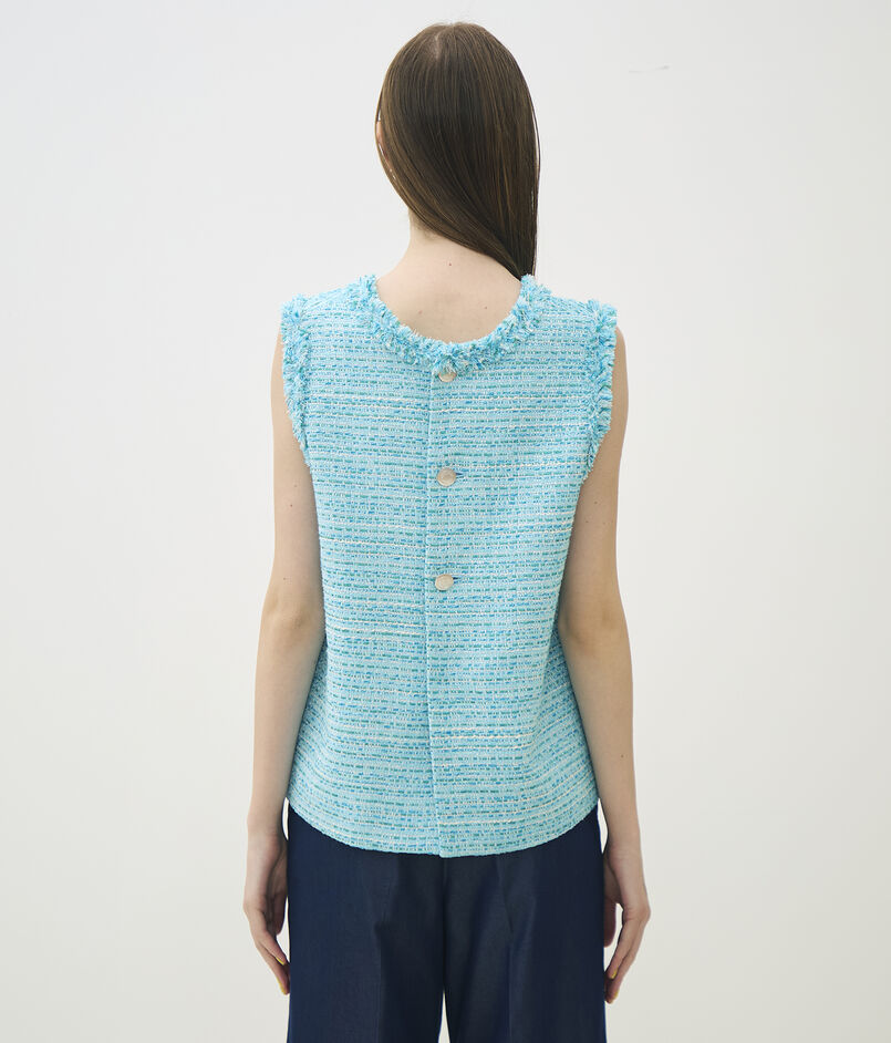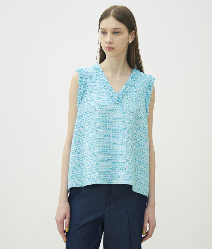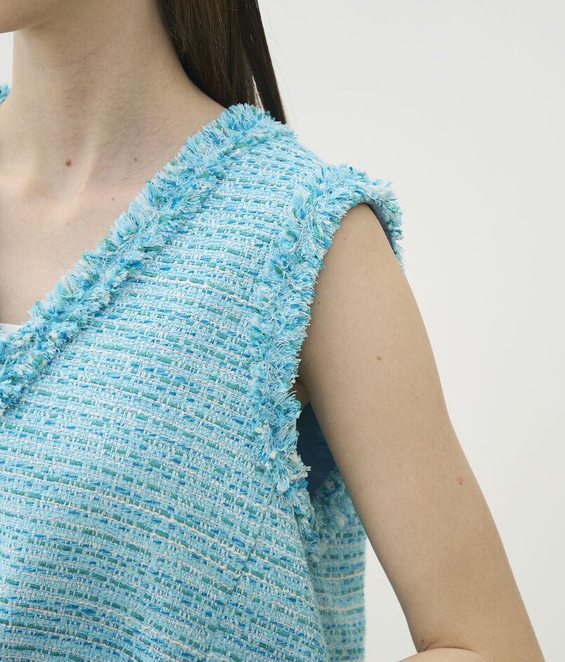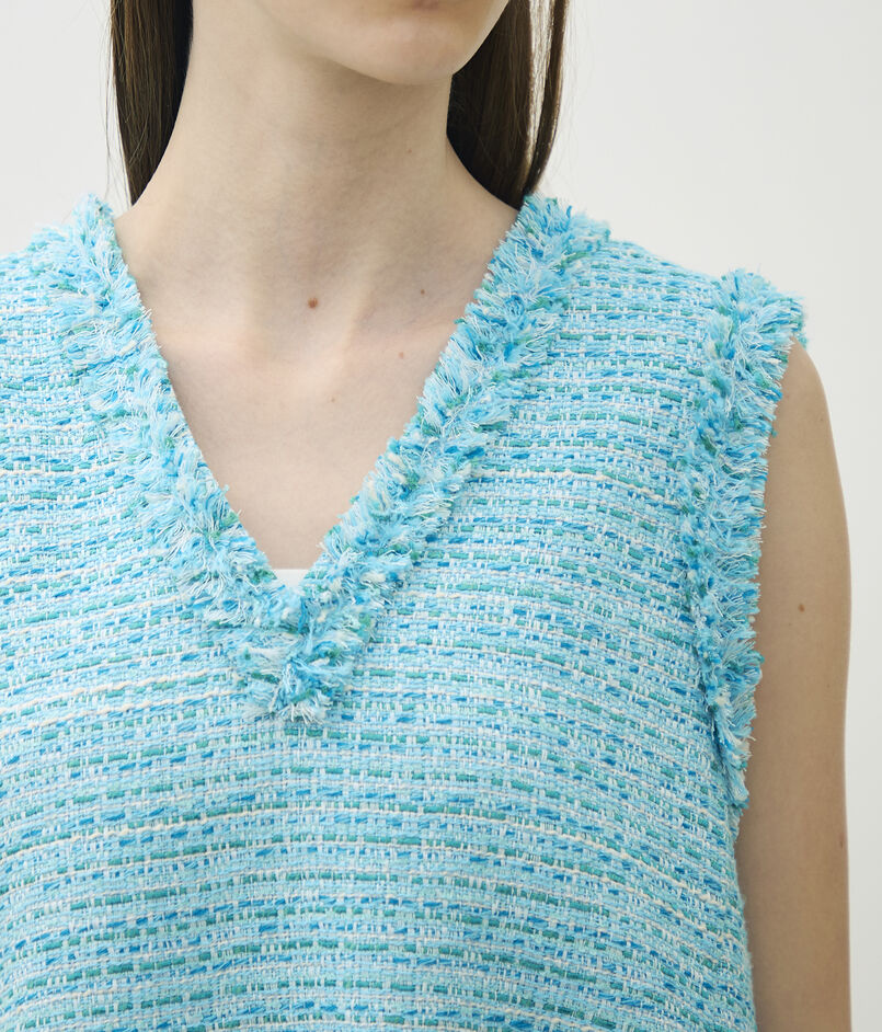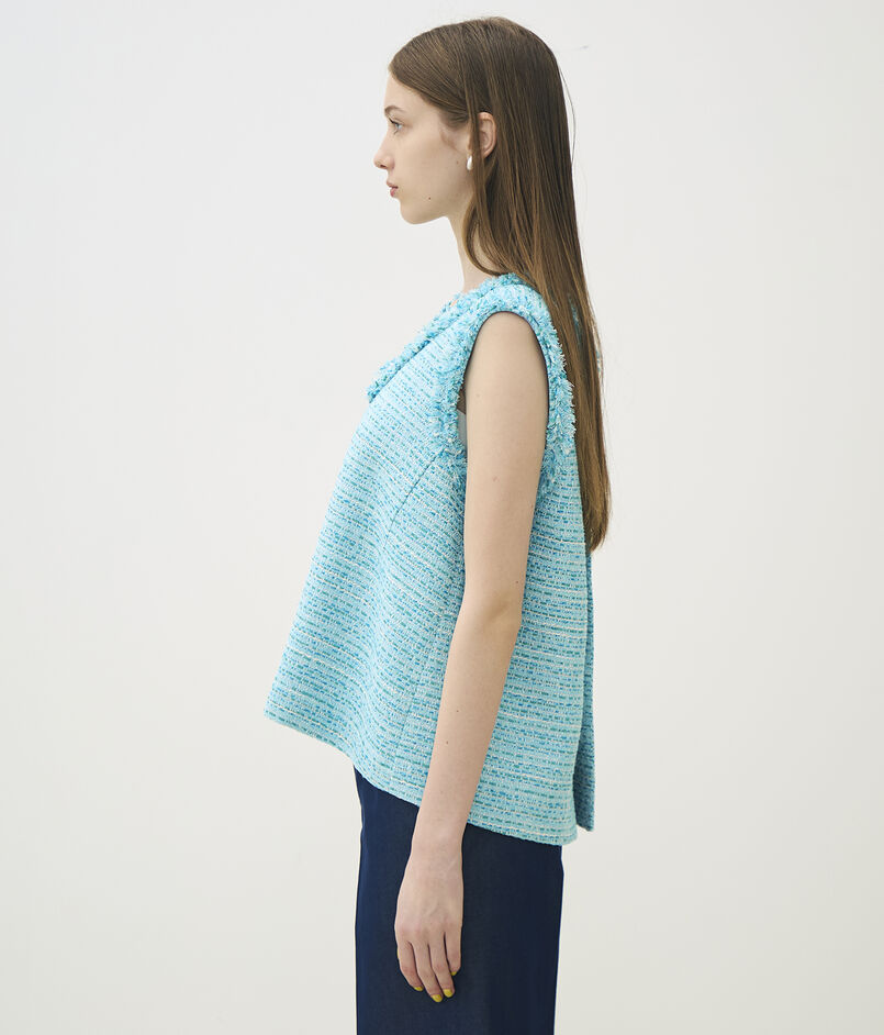 さまざまなブルーの意匠糸によるツイードは、軽やかさと清涼感を演出してくれます。