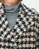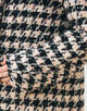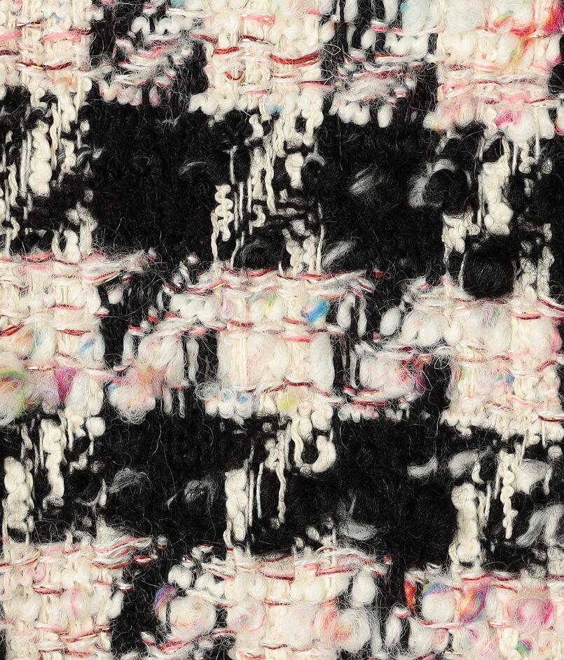 優しい色合いのスラブヤーンやリングヤーンなどのさまざまな表情の意匠糸で織り上げることで、ベーシックなハウンドトゥース柄を〈TOMORROWLAND collection〉らしく上品に表現しています。