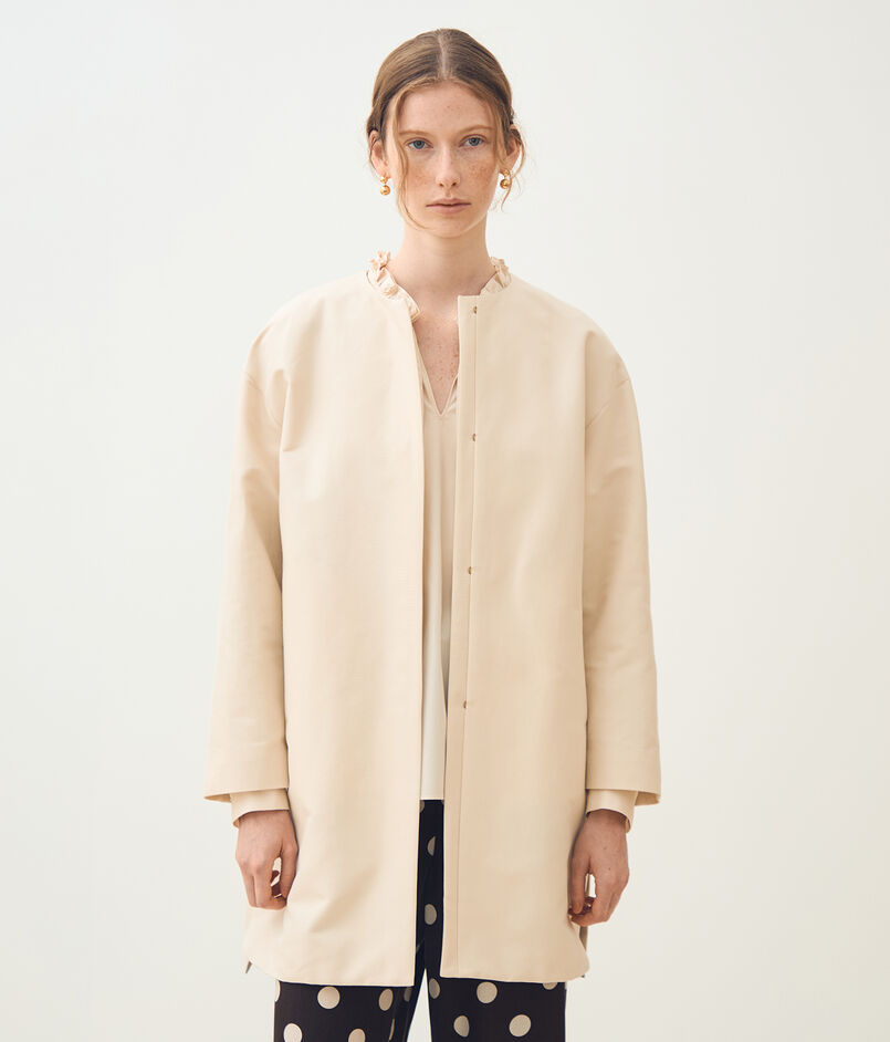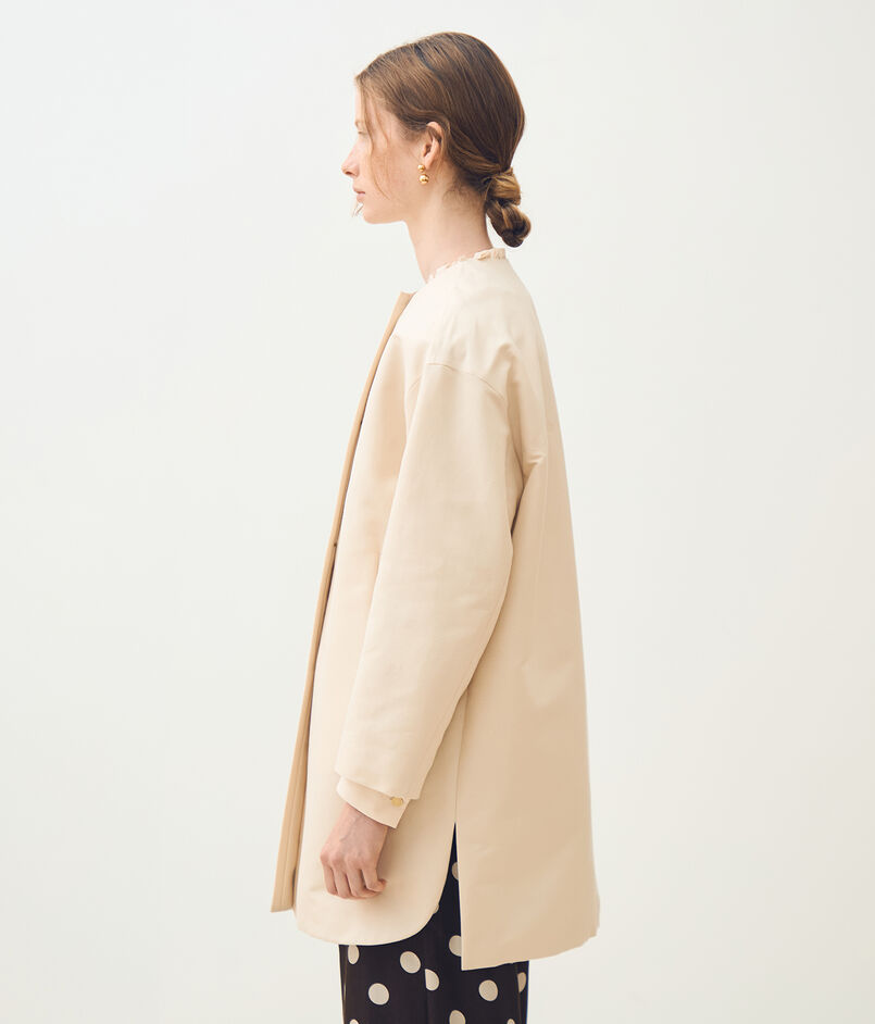 コットンシルクグログラン ノーカラーコート