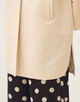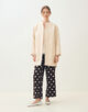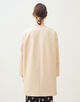 コートは丸みのあるコクーンシルエットにフロントのラウンドヘムラインで女性らしい柔らかな雰囲気の一着。