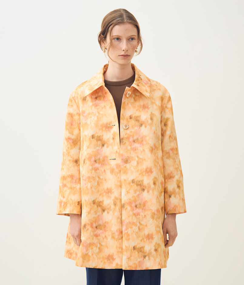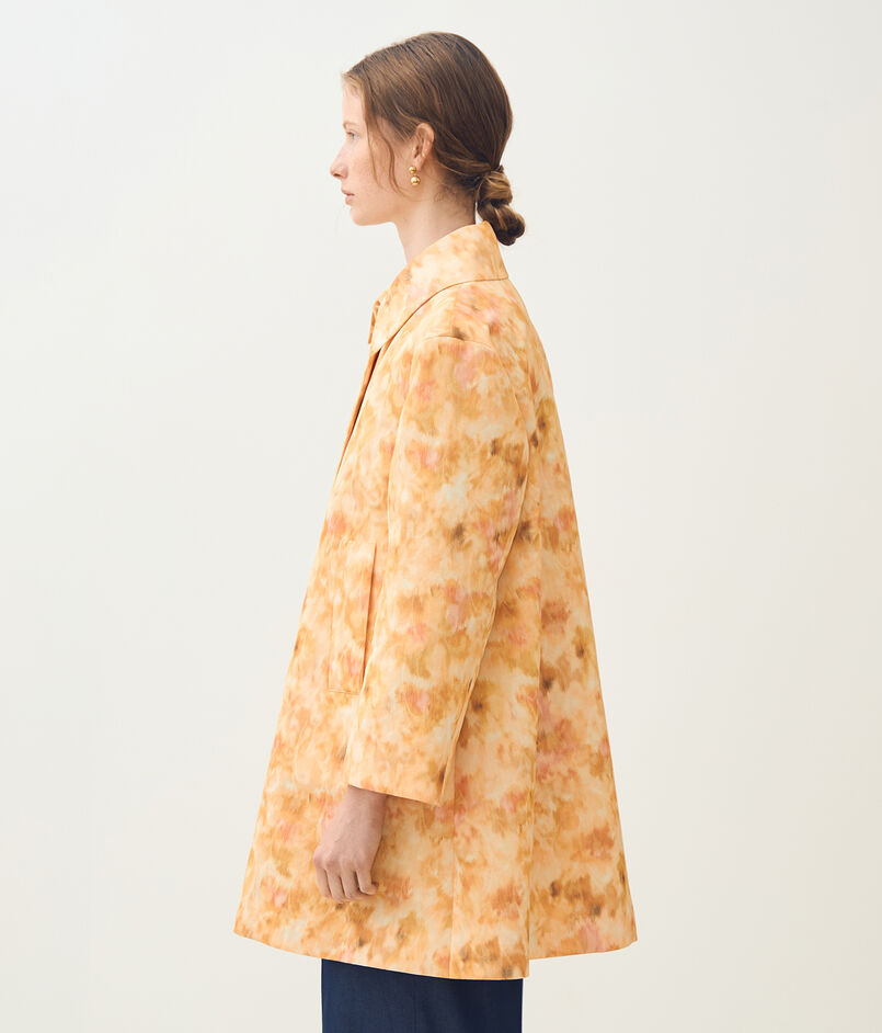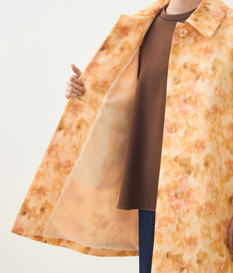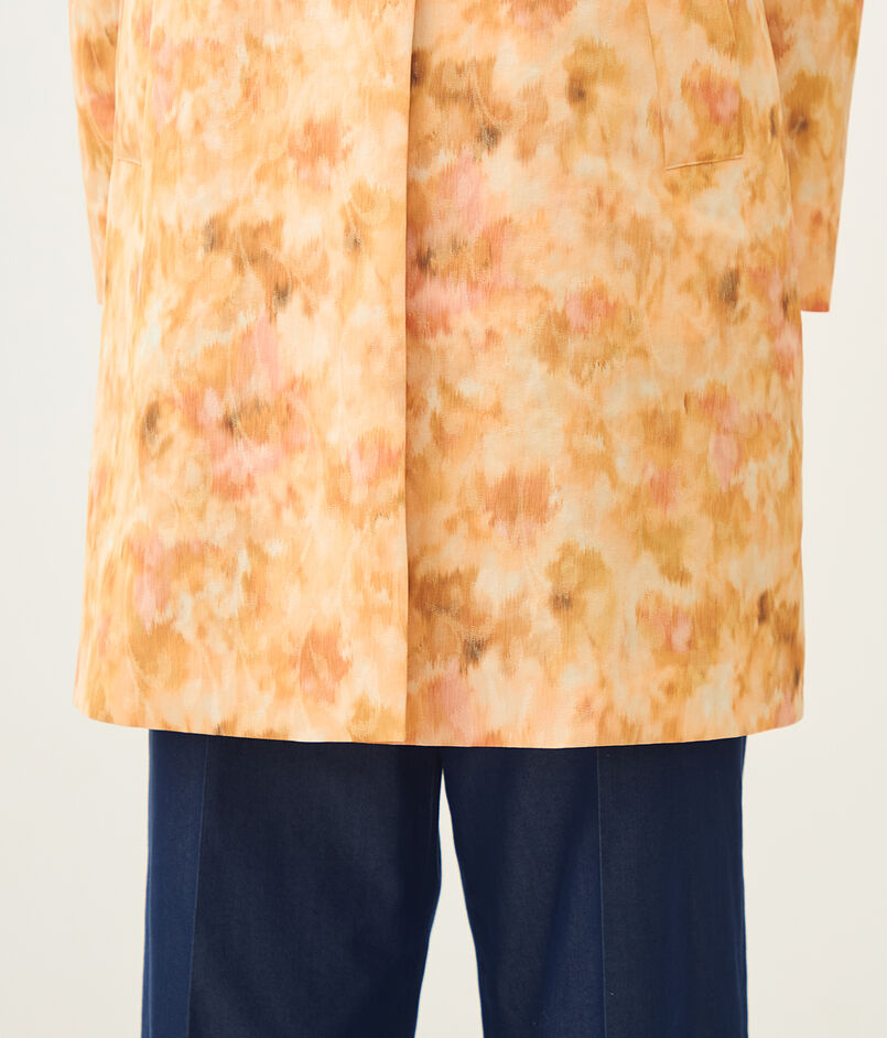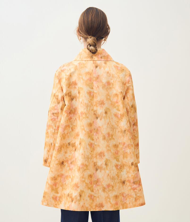 ジャカードとプリントの両方の技術を用いた、春を感じさせる美しい色合いの上質な素材を使用したコート。