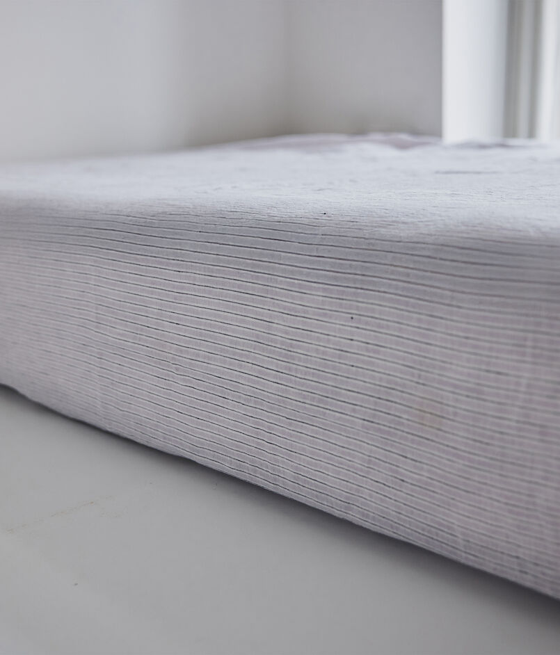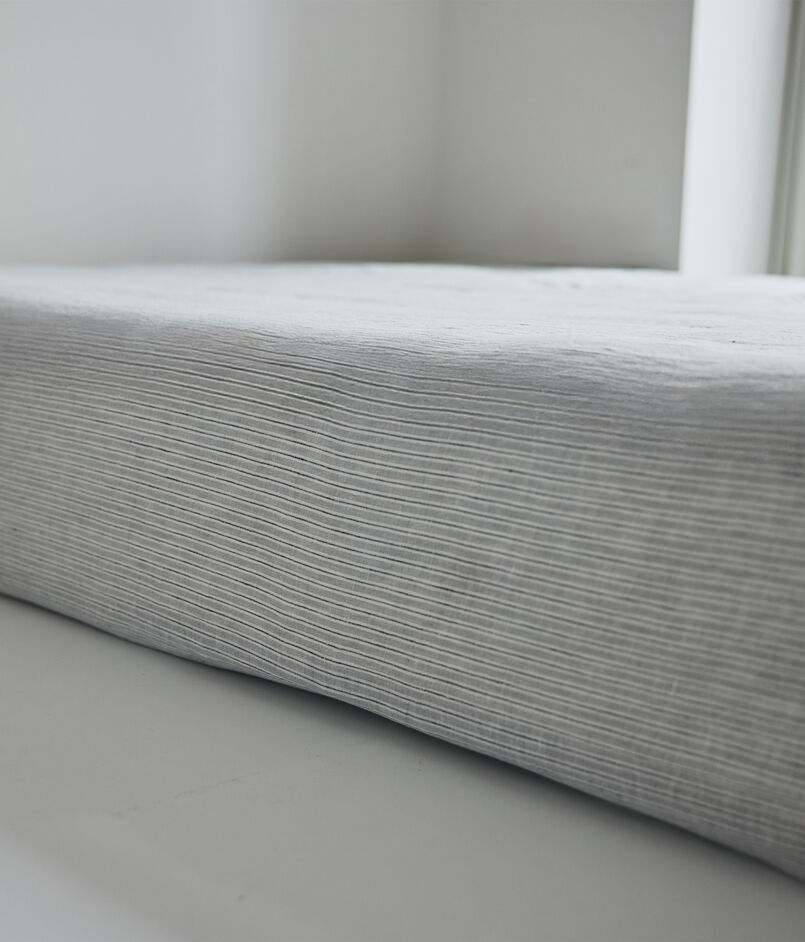 ヨーロッパ産のフラックス(亜麻)を使い、ポルトガルの工場で生地の織りから縫製までを仕上げたフラットシーツ。