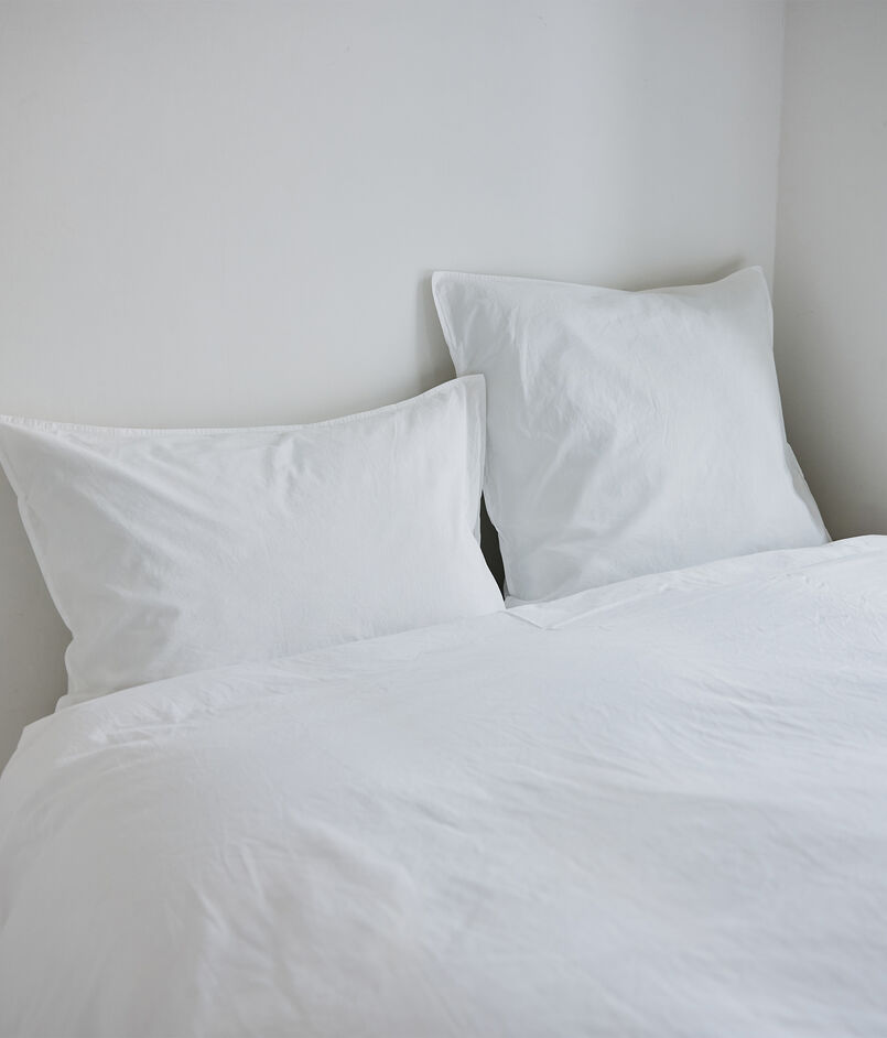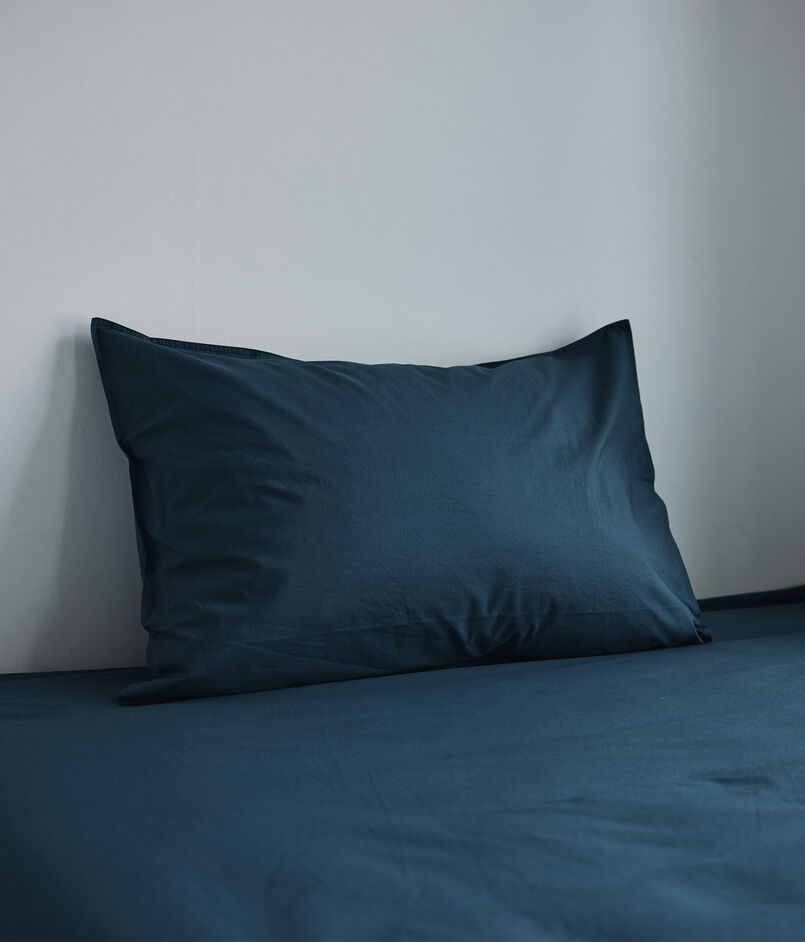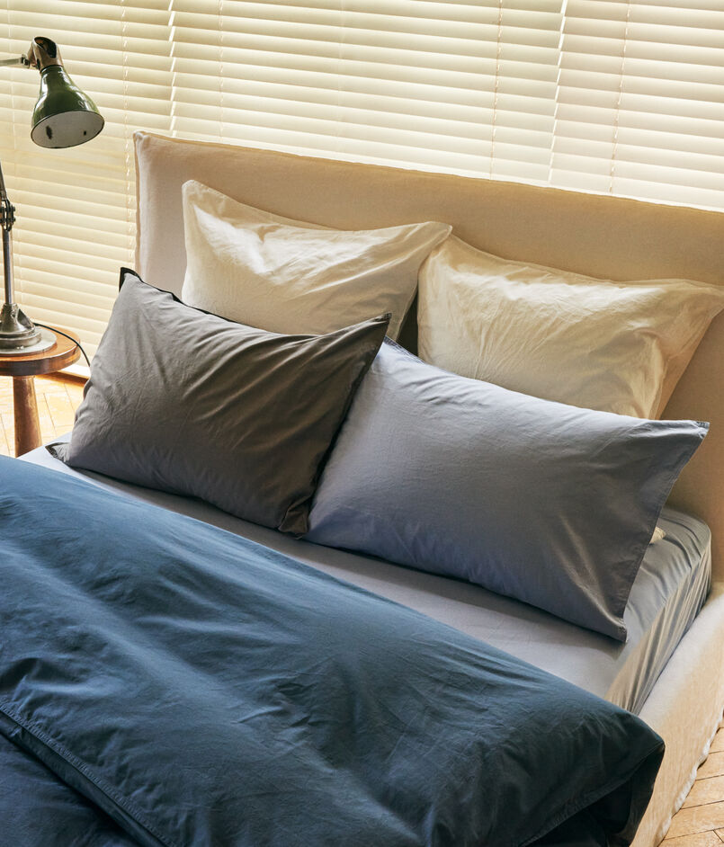 エジプト・インド産の超長綿を使い、ポルトガルの工場で生地の織りから縫製までを仕上げた枕カバー。