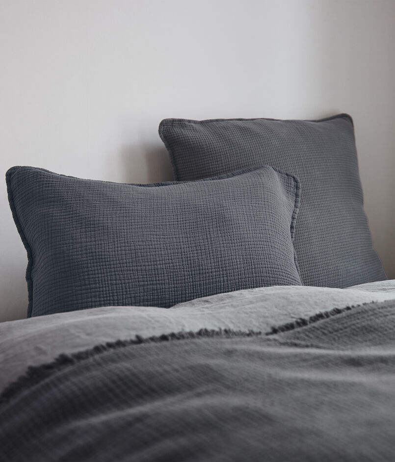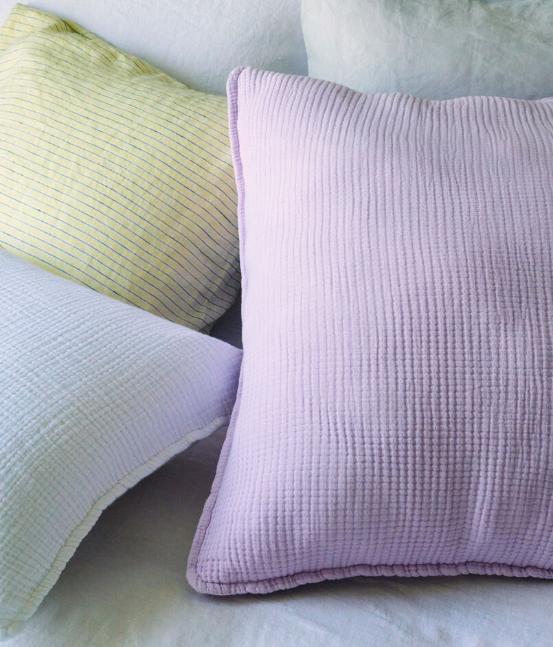 織り目の粗い平織の薄いガーゼ生地を、4枚重ねた肌触りの良いピローケース。