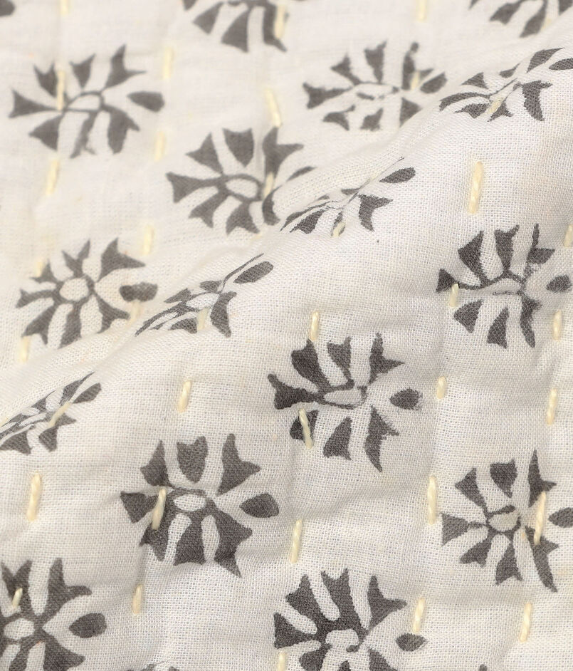 一針一針、丁寧な手仕事で施された刺し子のあたたかな表情が魅力のキルトです。
