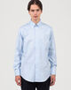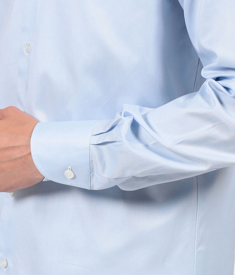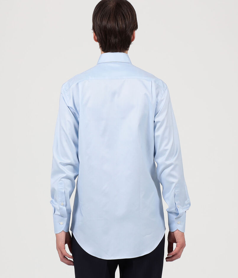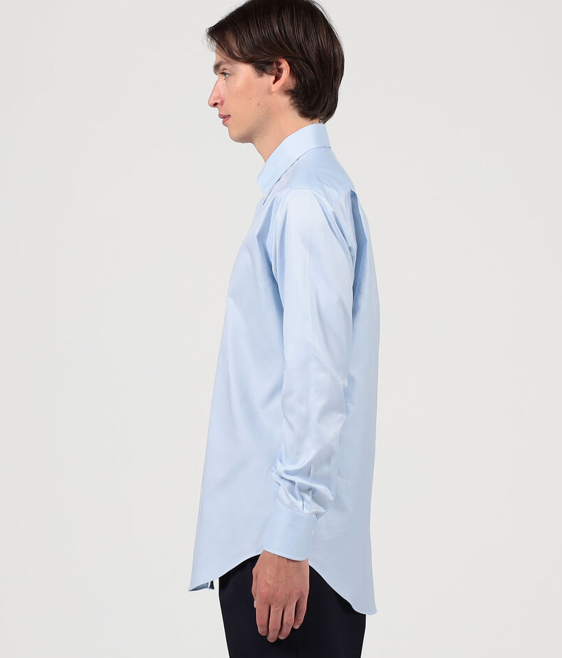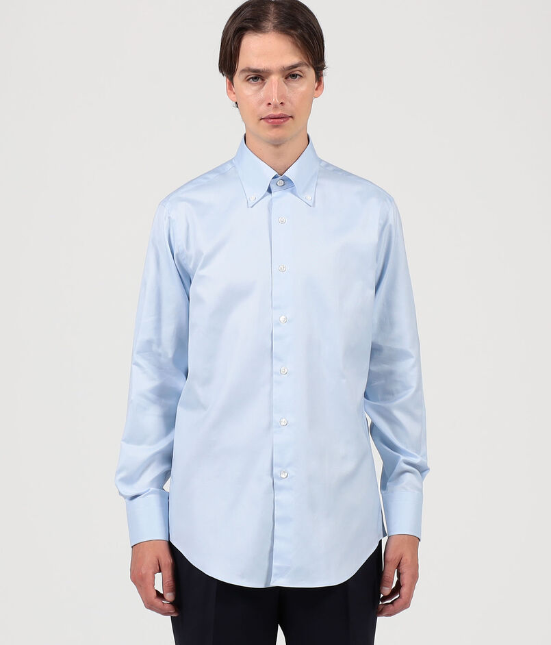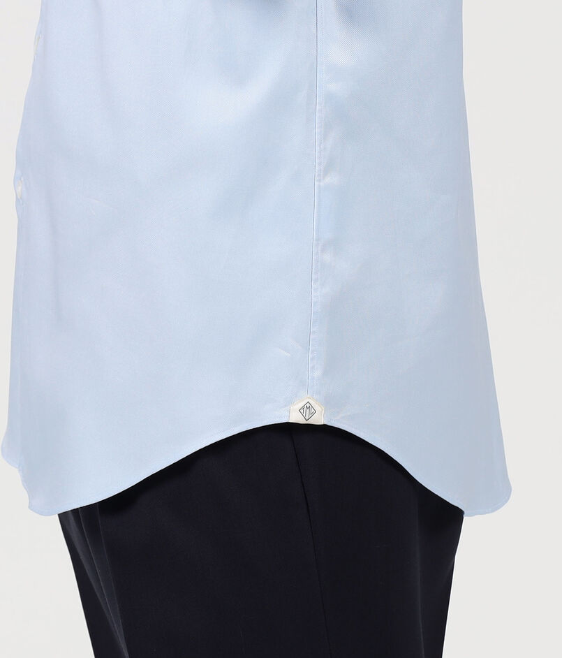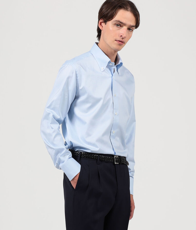 衿のロールがきれいに出るロングポイントのボタンダウンで、ボディはすっきりとしたスリムフィットを採用しています。