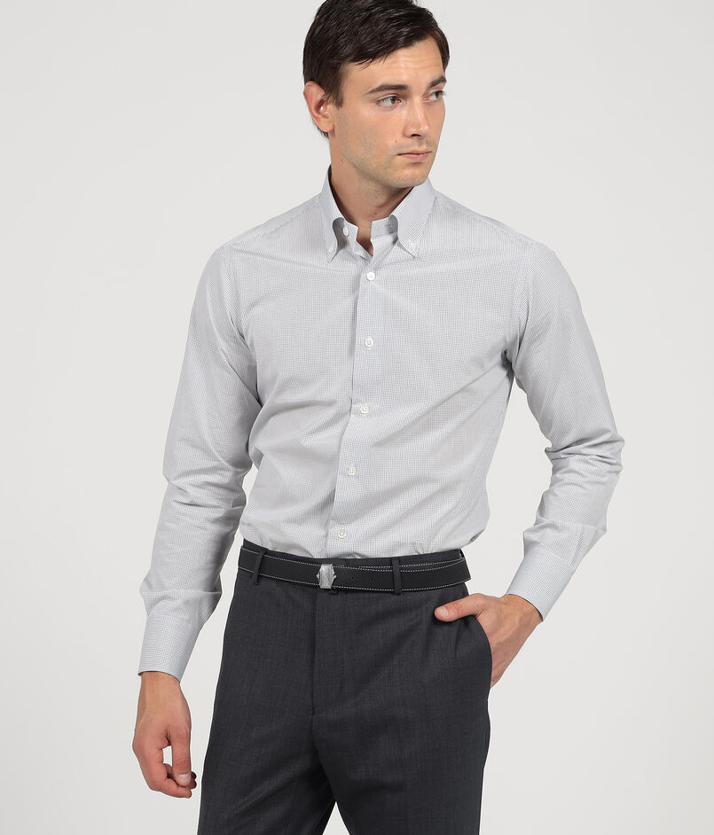 ボディはスリムフィットを採用したボタンダウンシャツ。