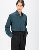 日本有数のシルク織物産地である米沢のメーカーに別注したシルクタフタ素材を使用したシャツ。