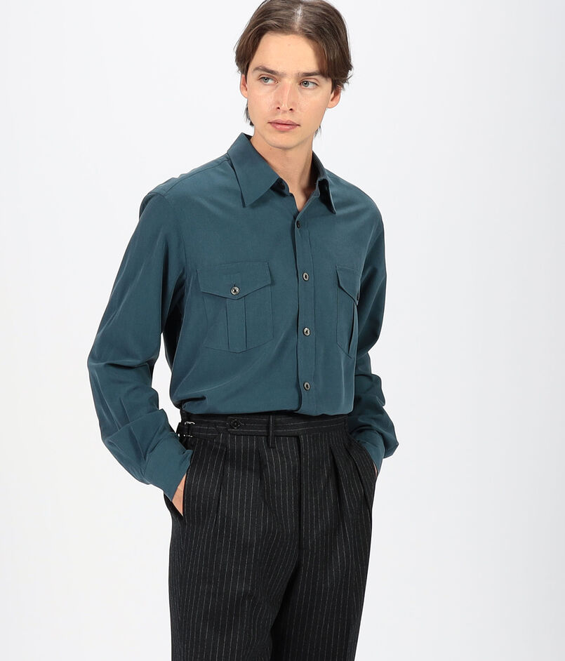 シルクタフタ ダブルポケット レギュラーカラーシャツ