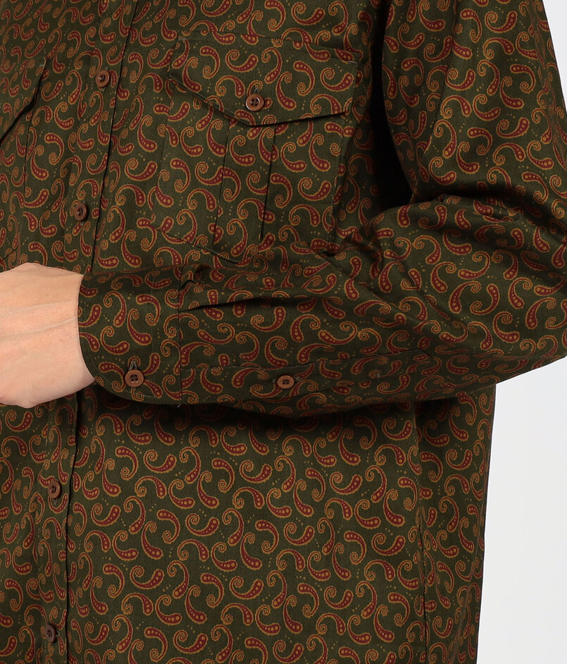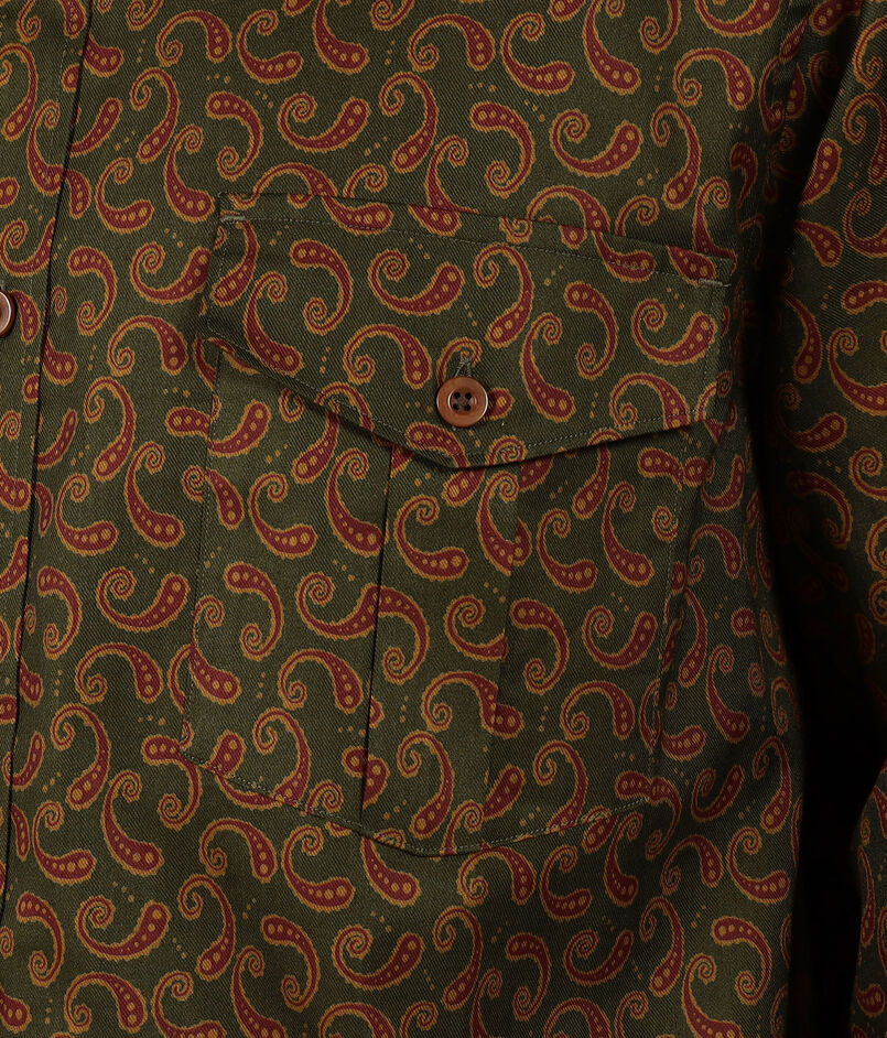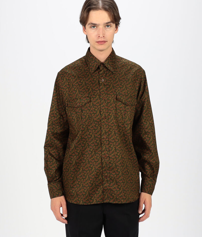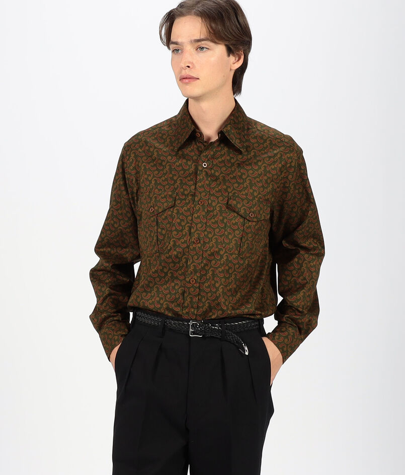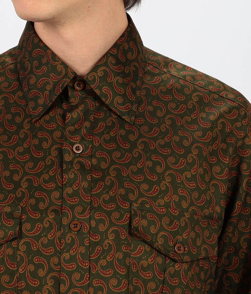 コットンツイル ペイズリープリント ダブルポケットレギュラーカラーシャツ
