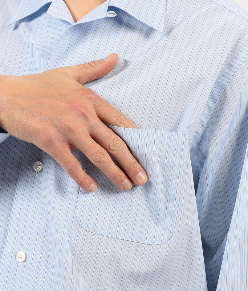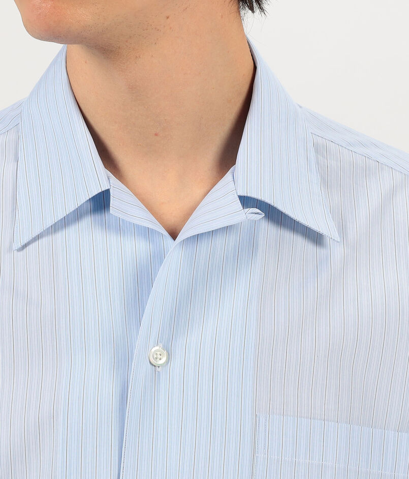 伊〈CANCLINI(カンクリーニ)〉社のベストセラークォリティ『 SKIN 』シリーズの平織りのマルチストライプ素材を使用したオープンカラーシャツ。