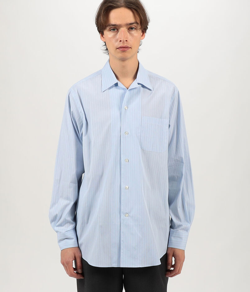 コットンストライプ オープンカラー ロングスリーブシャツ CANCLINI