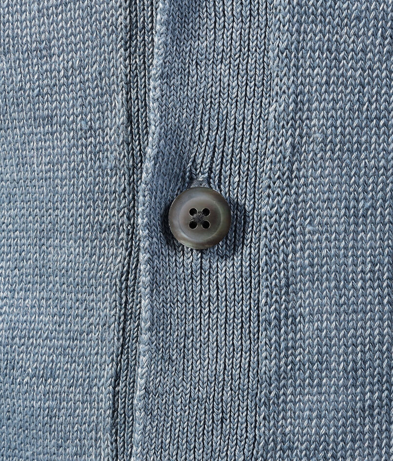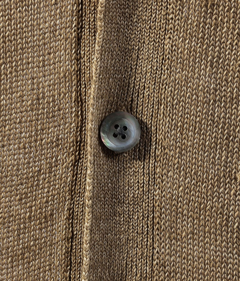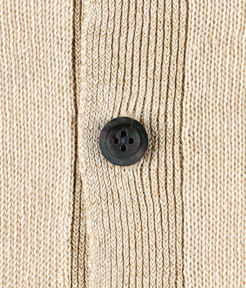 ミドルゲージの光沢感のある中白染めのリネンを使用。中白染めした糸を束ねて編むことで、ざっくりとした風合いになり、夏場でも肌離れの良い手触りに。
