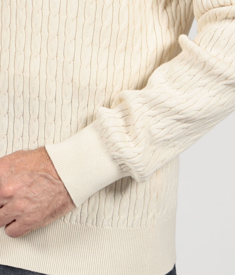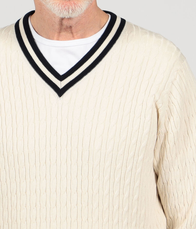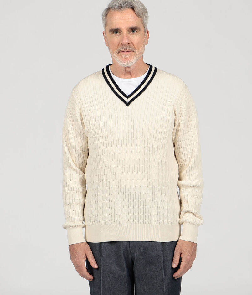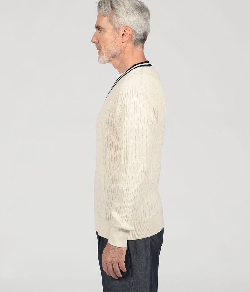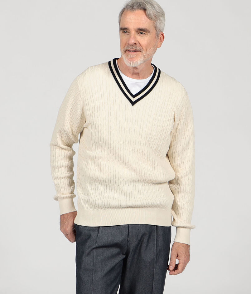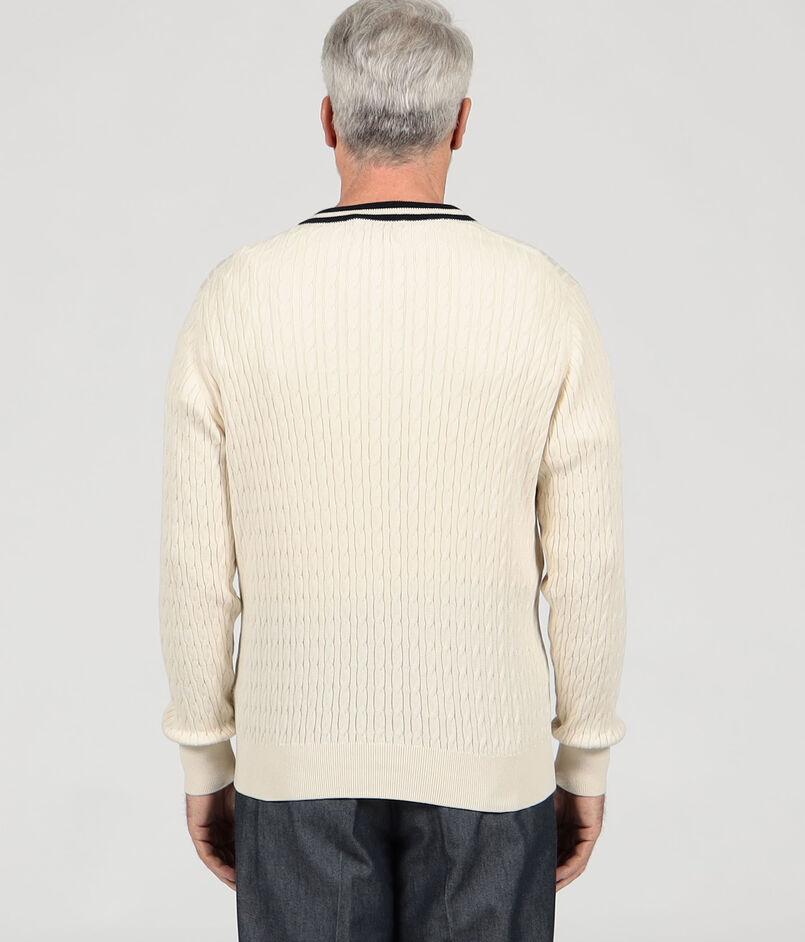 ■コットンシルク Vネックプルオーバー ケーブルニット