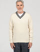 深めのVネックのデザインはシャツ以外にもカットソーの上に合わせてカジュアルな装いにもマッチします。