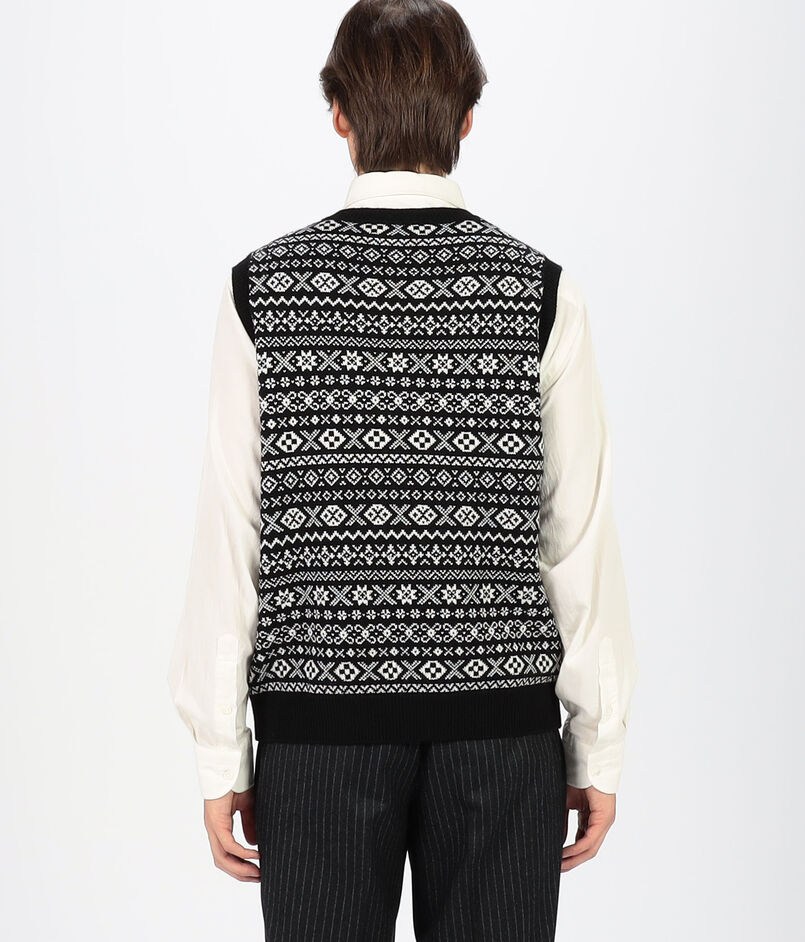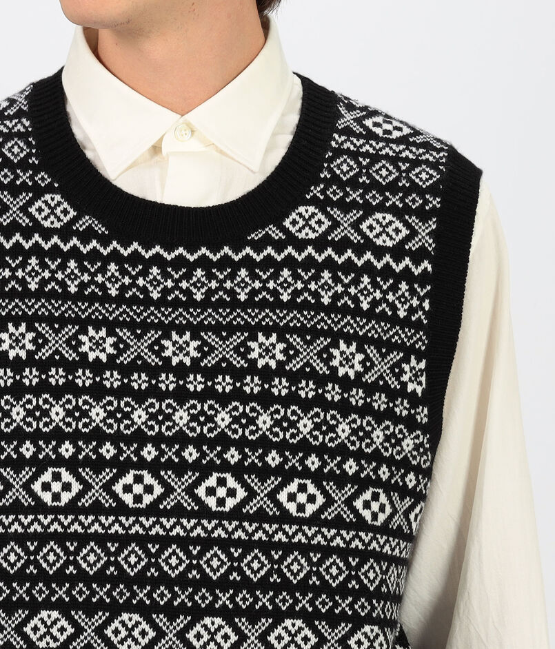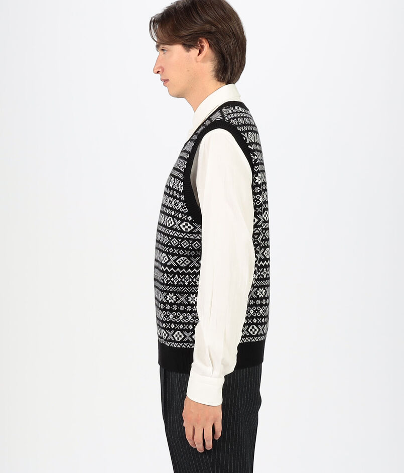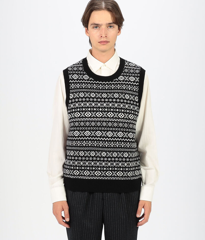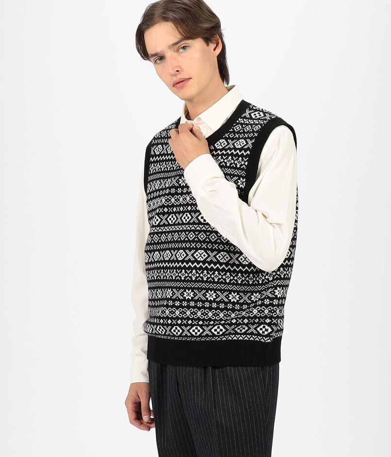 トーンオントーンのフェアアイルジャカードベスト。