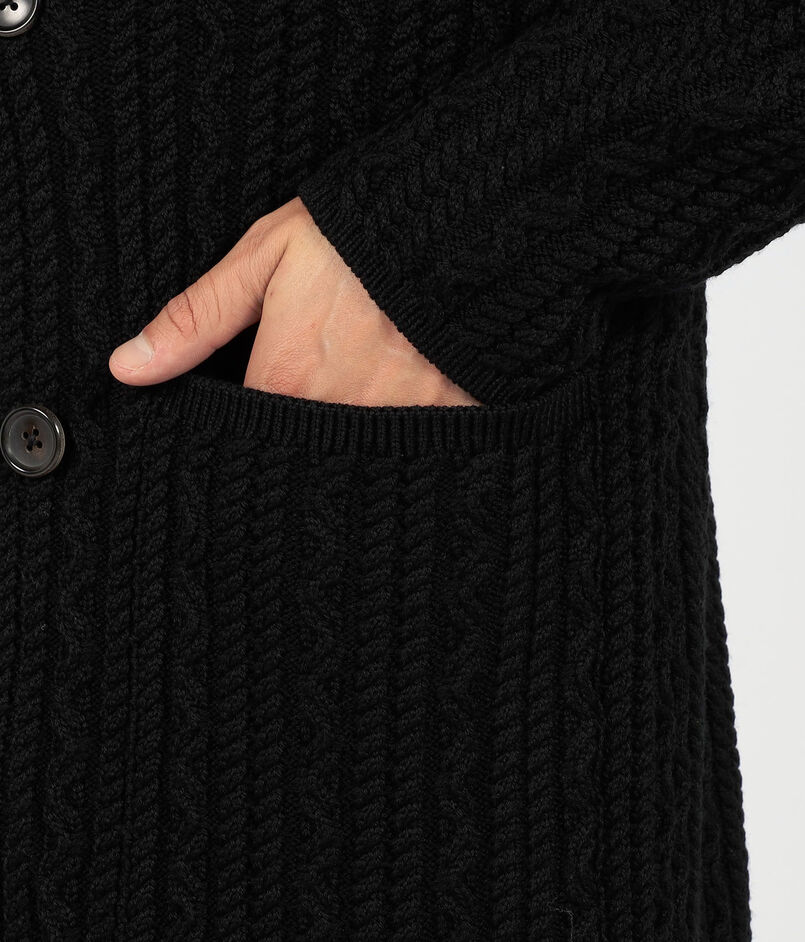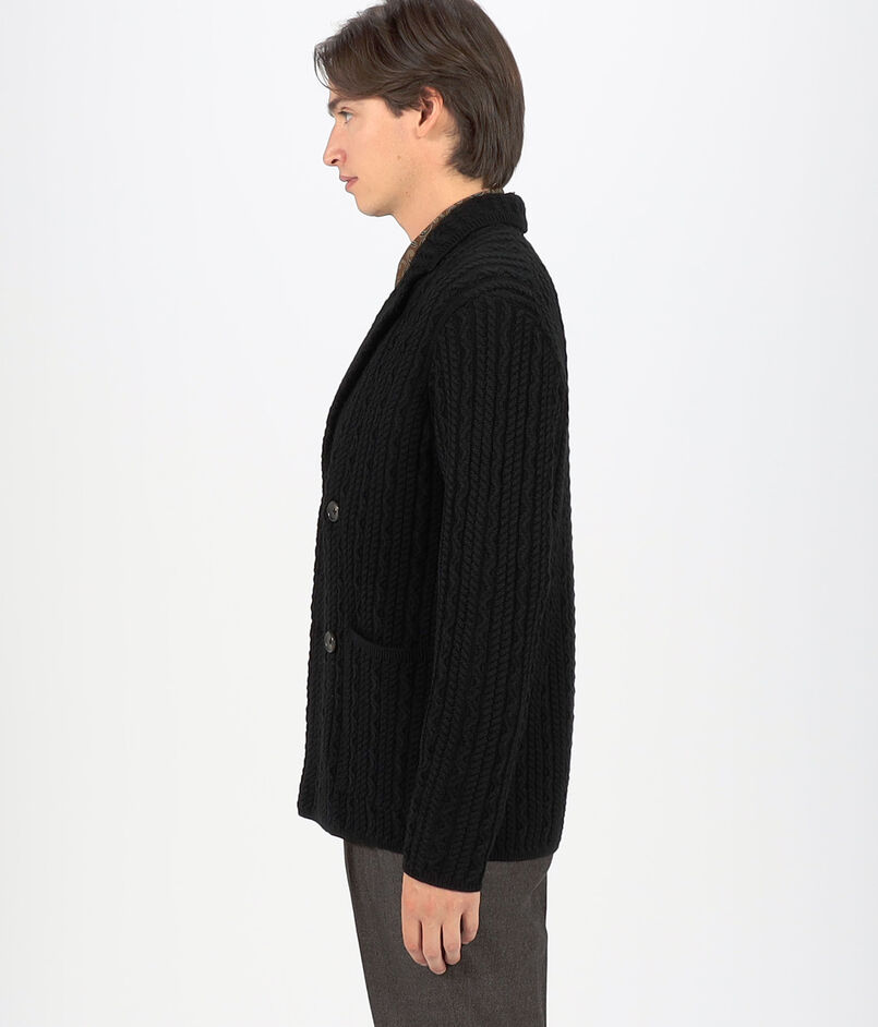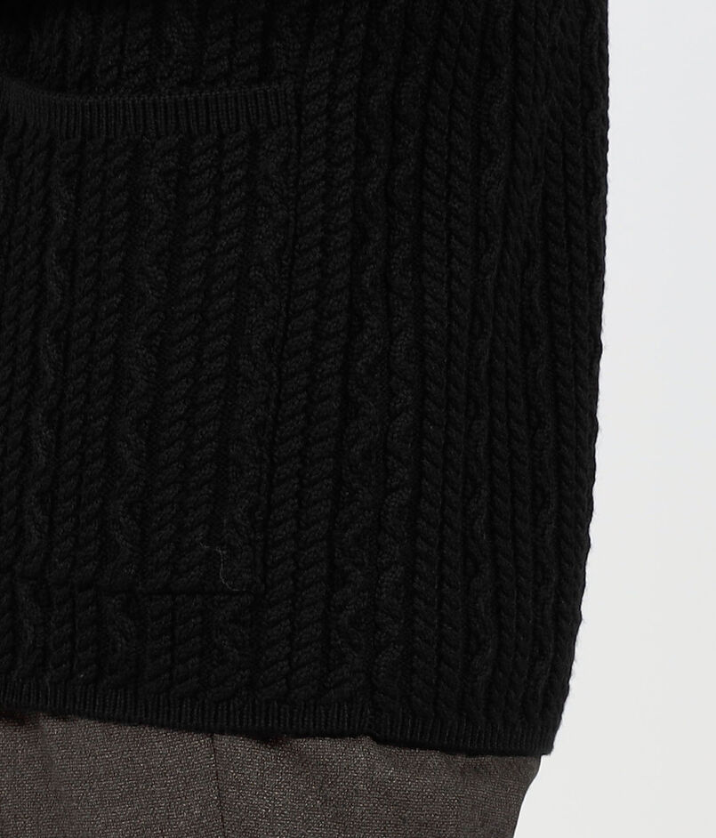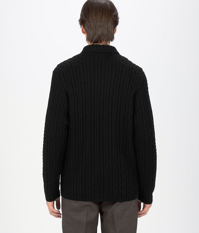 メリノウールのつややかな天然の光沢感が特徴のケーブル柄ニットジャケット。