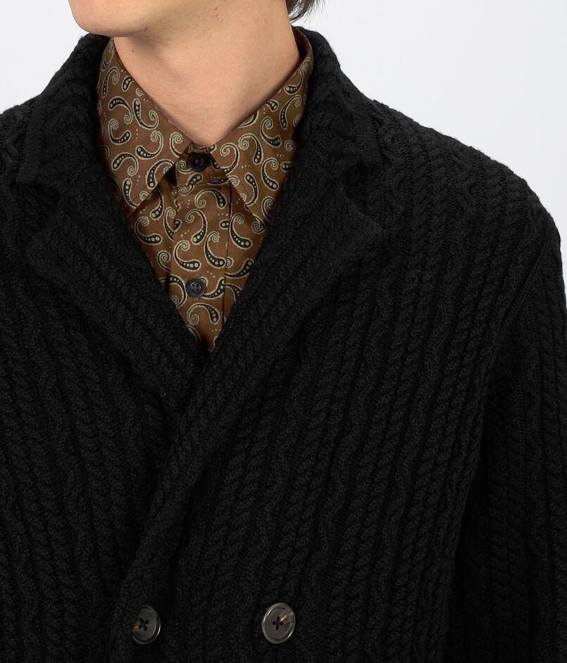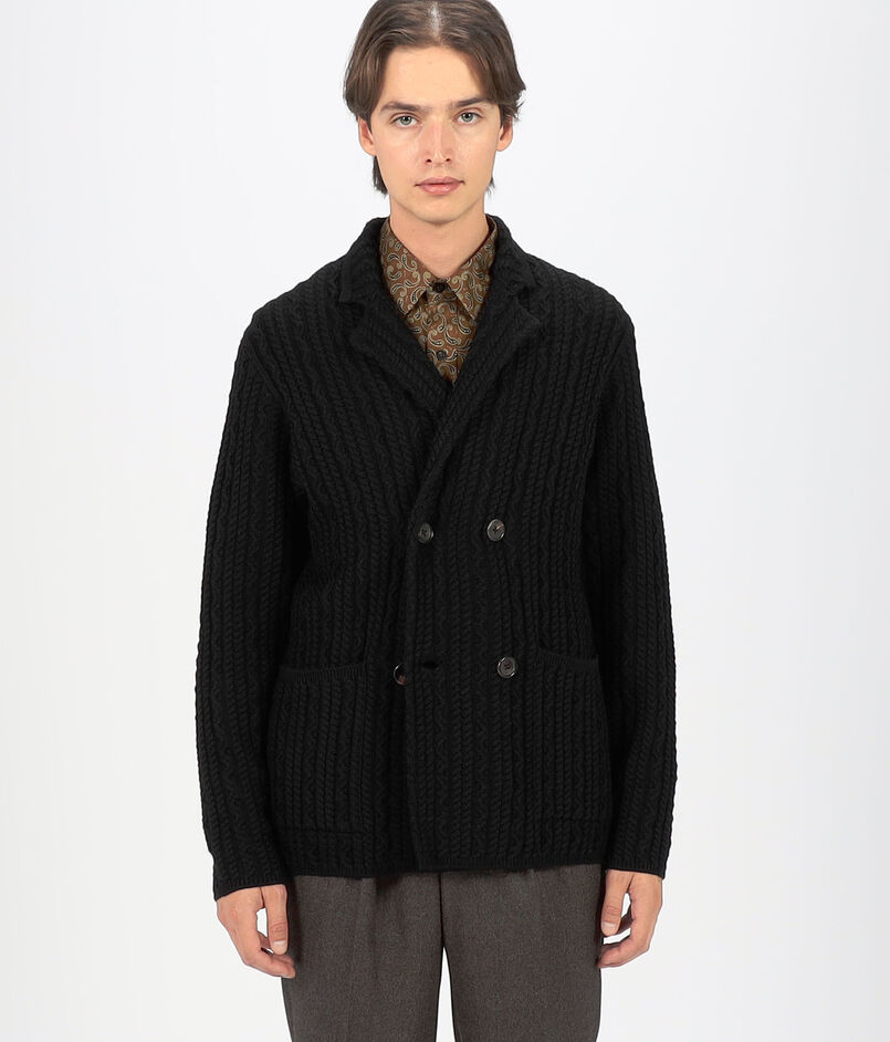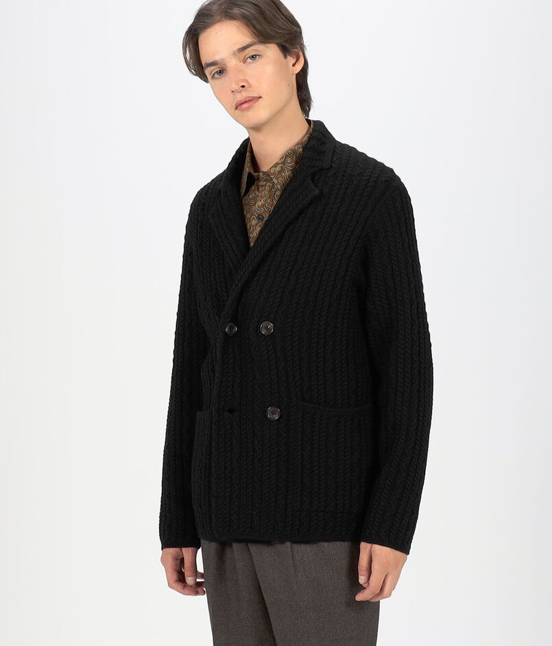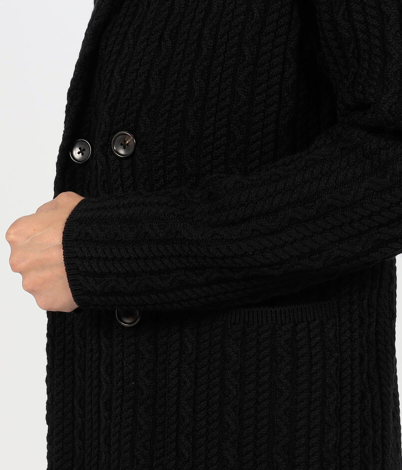 ウールケーブルニット ダブルブレスト4Bジャケット